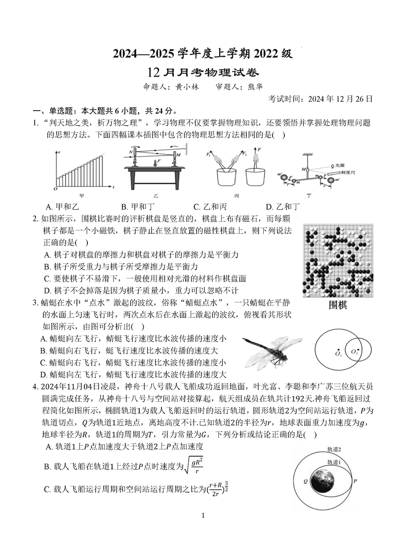 湖北沙市中学2024-2025学年高三上12月月考物理考试已于近日开考,为方便考生考后及时查看考试情况,查漏补缺、弥补不足,本文整理了试题答案解析相关信息!