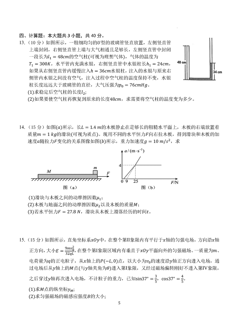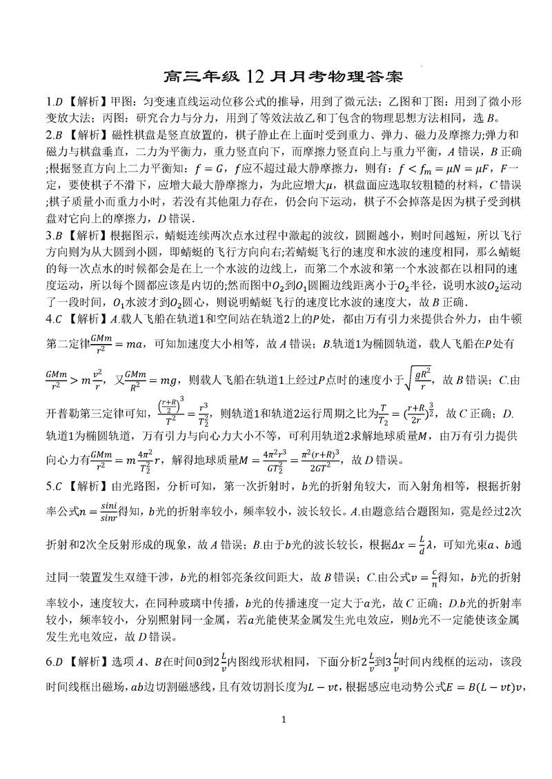 湖北沙市中学2024-2025学年高三上12月月考物理试题及答案