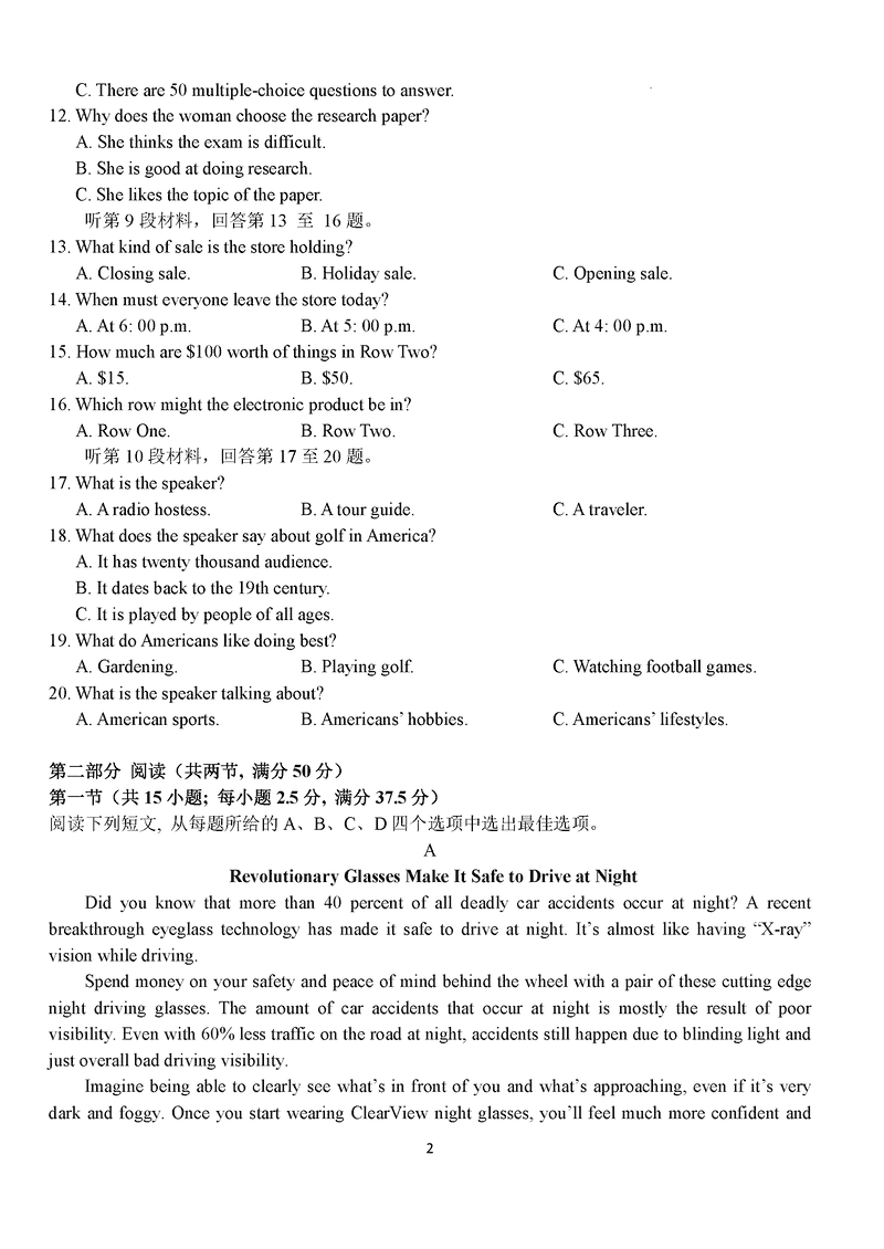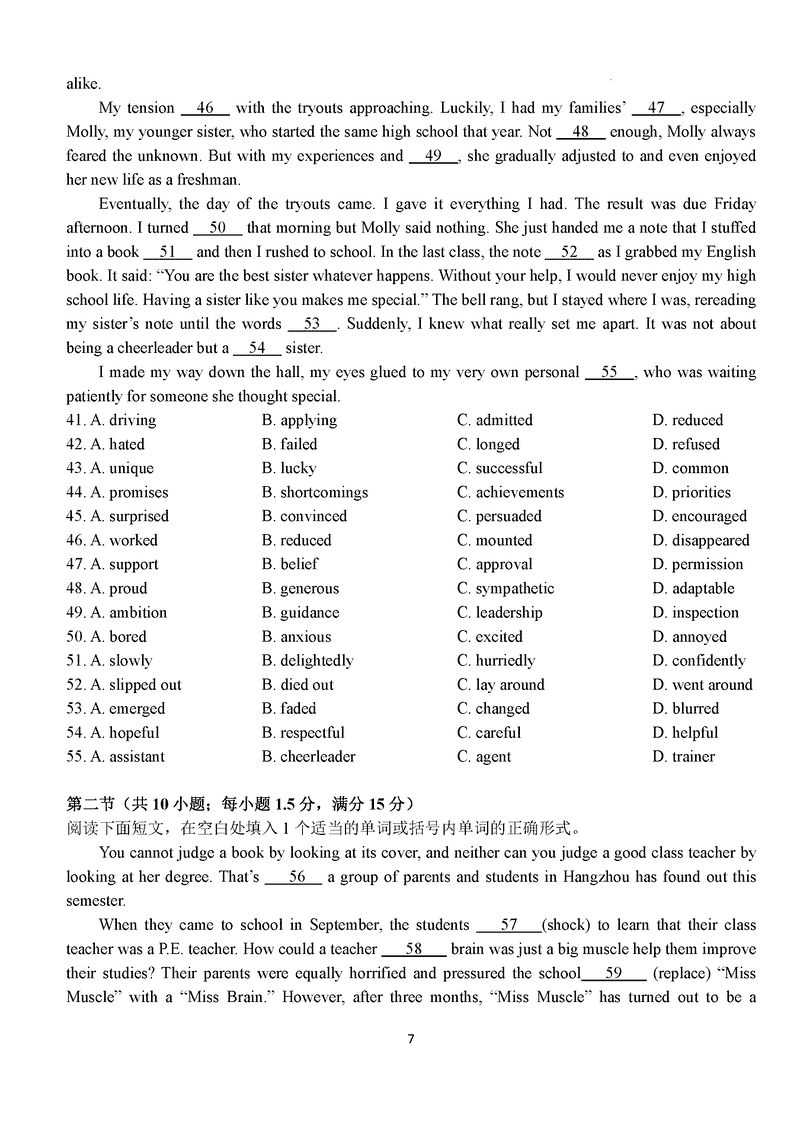 湖北 英语试题