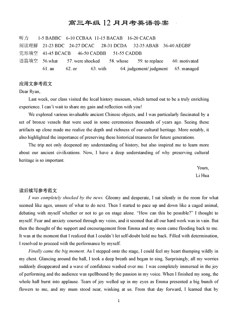 湖北沙市中学2024-2025学年高三上12月月考英语考试已于近日开考,为方便考生考后及时查看考试情况,查漏补缺、弥补不足,本文整理了试题答案解析相关信息!