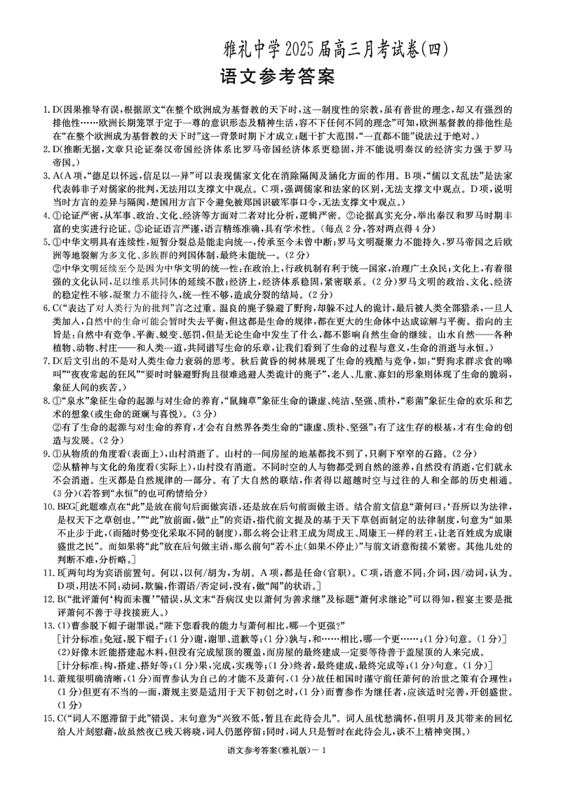 长沙雅礼中学2024-2025学年高三上学期月考(四)语文试题及答案