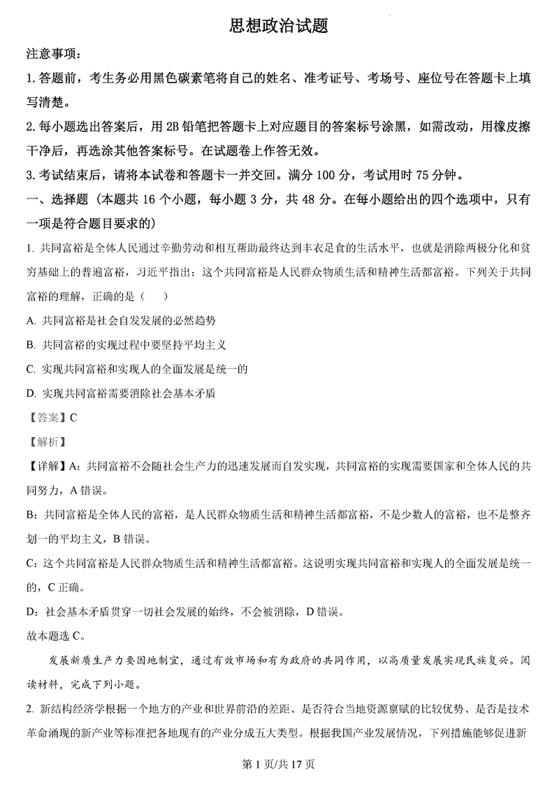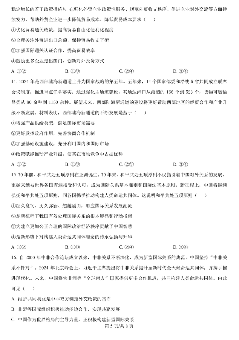 重庆一中2025届高三上学期12月月考政治试题及答案 时间:2025-01-03 重庆 文综试题 重庆一中2025届高三上学期12月月考政治考试已于近日开考,为方便考生考后及时查看考试情况,查漏补缺、弥补不足,本文整理了试题答案解析相关信息! 汇总:重庆一中2025届高三上学期12月月考试题及答案汇总 政治试题及答案解析