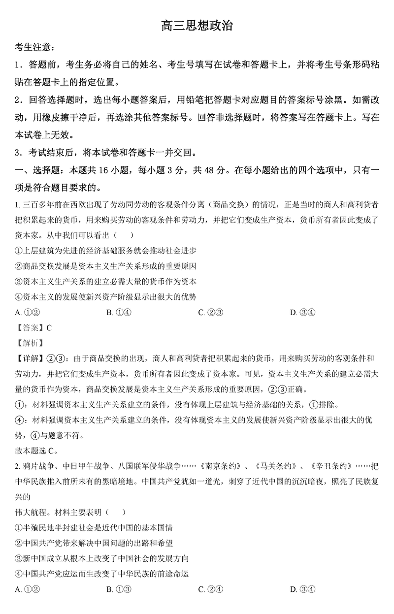 2025届湖南天一大联考暨郴州市高三教学质检政治考试已于近日开考,为方便考生考后及时查看考试情况,查漏补缺、弥补不足,本文整理了试题答案解析相关信息!