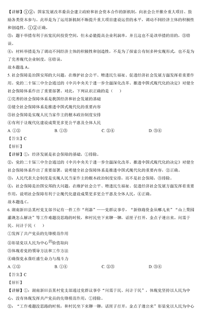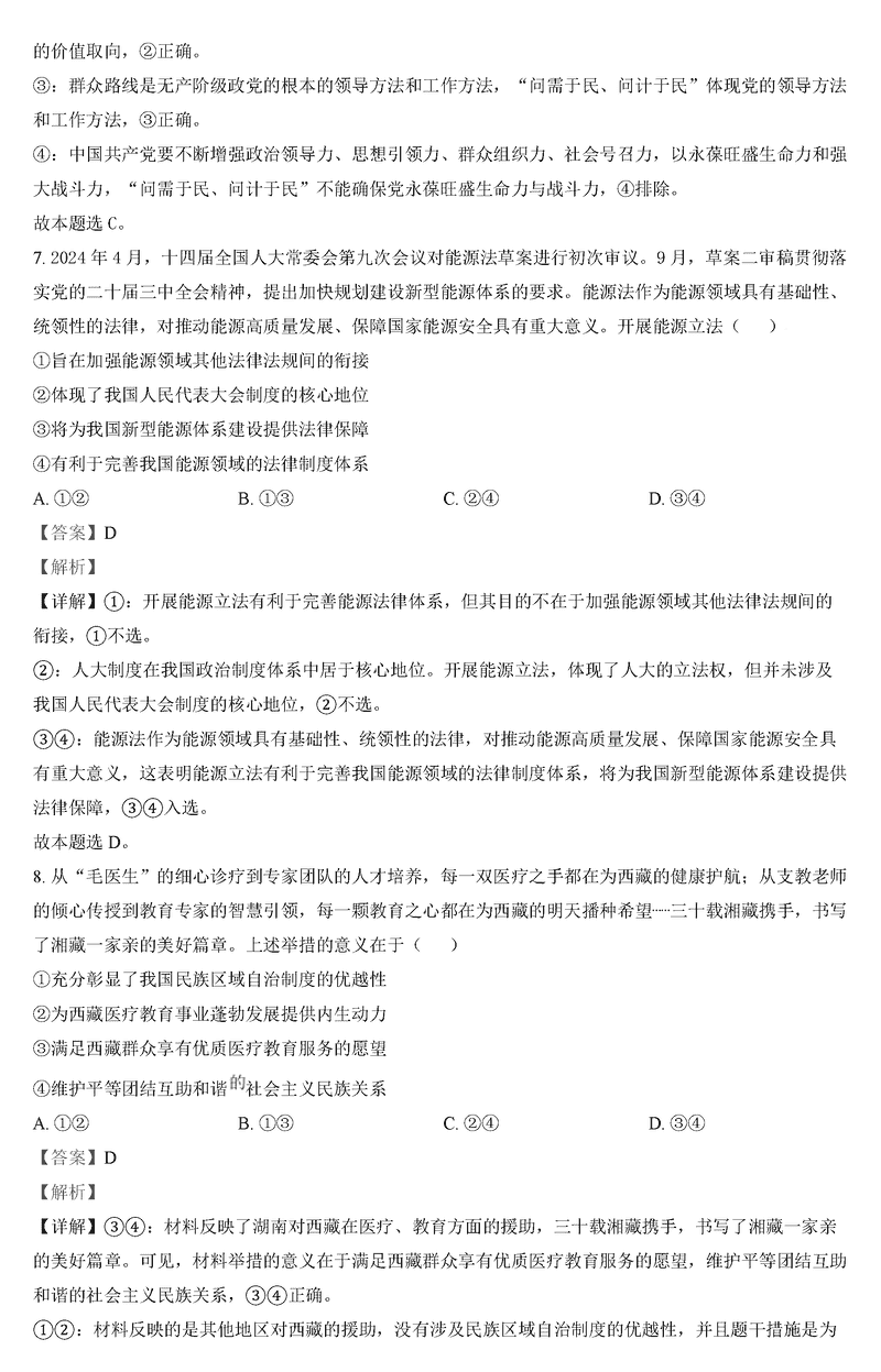 2025届湖南天一大联考暨郴州市高三教学质检政治试题及答案