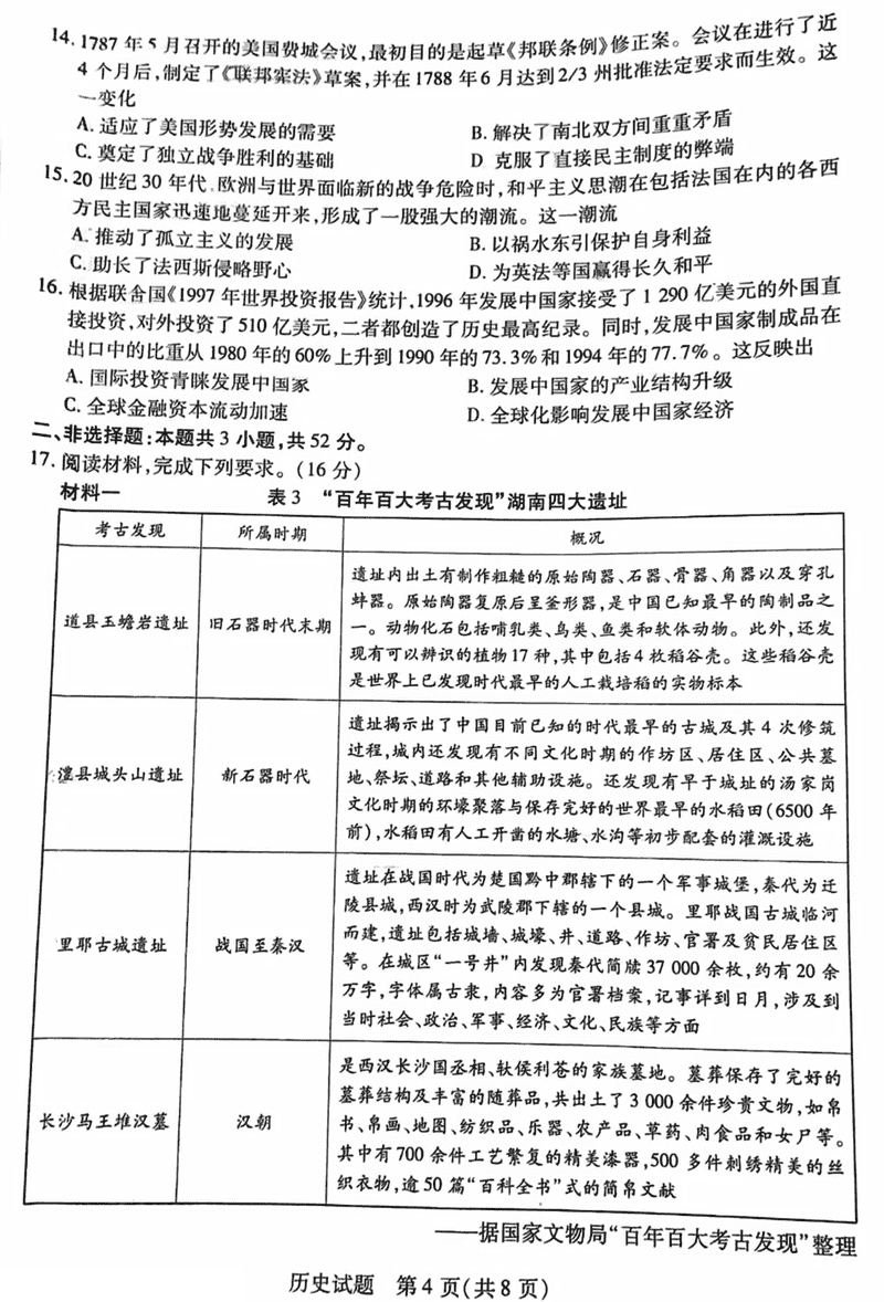2025届湖南天一大联考暨郴州市高三教学质检历史试题及答案