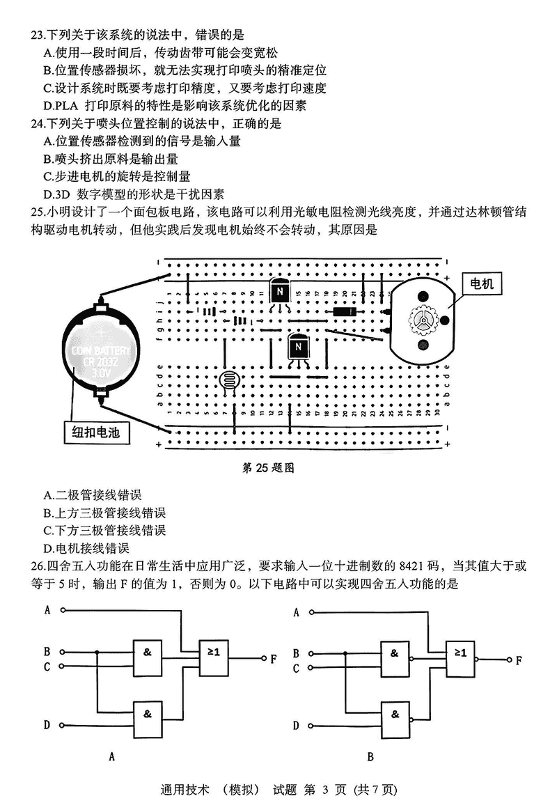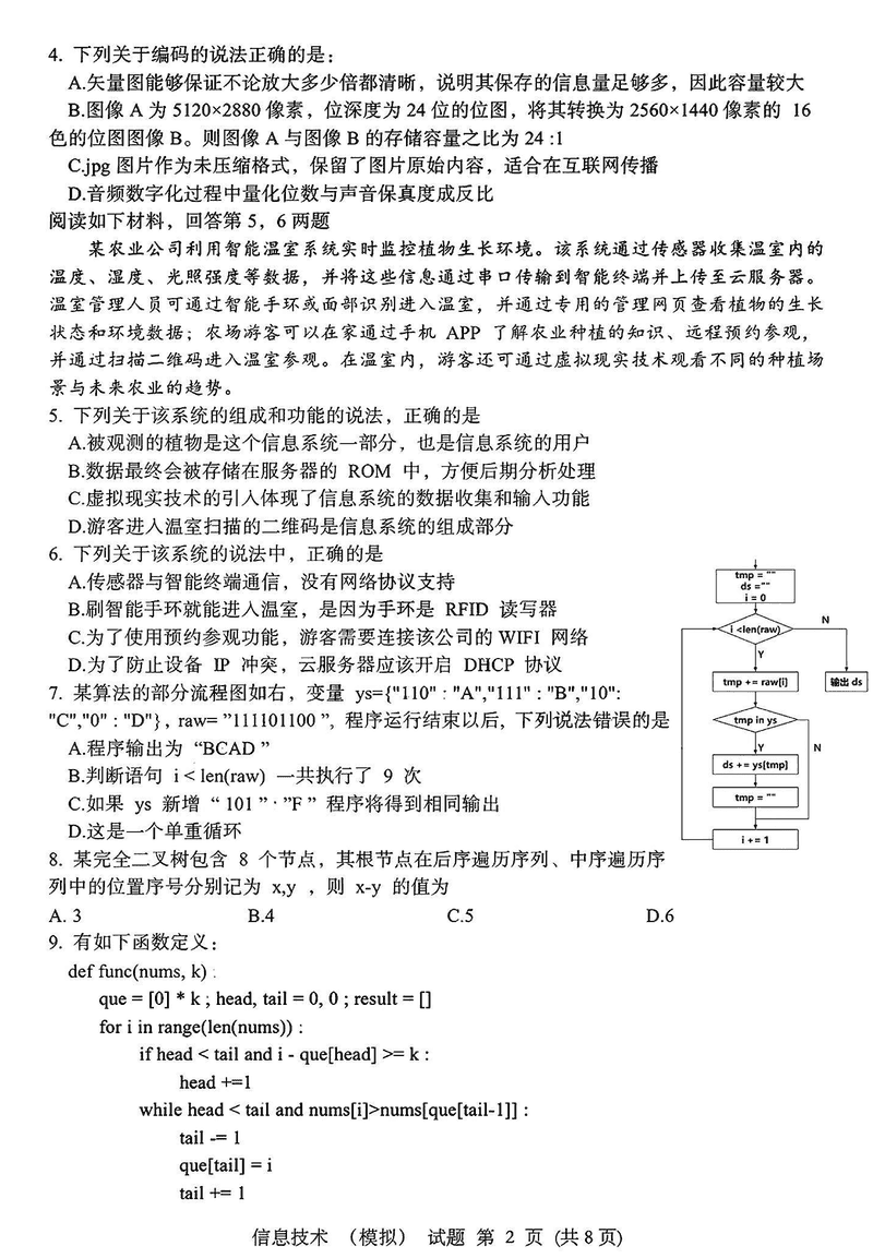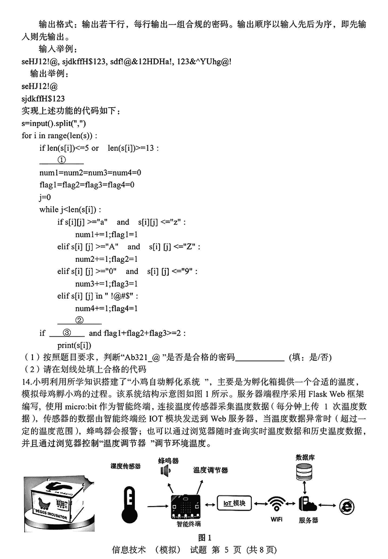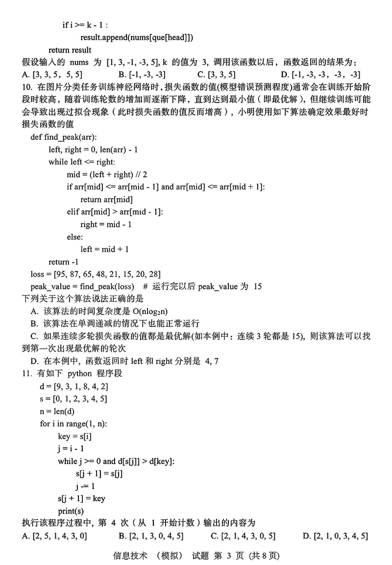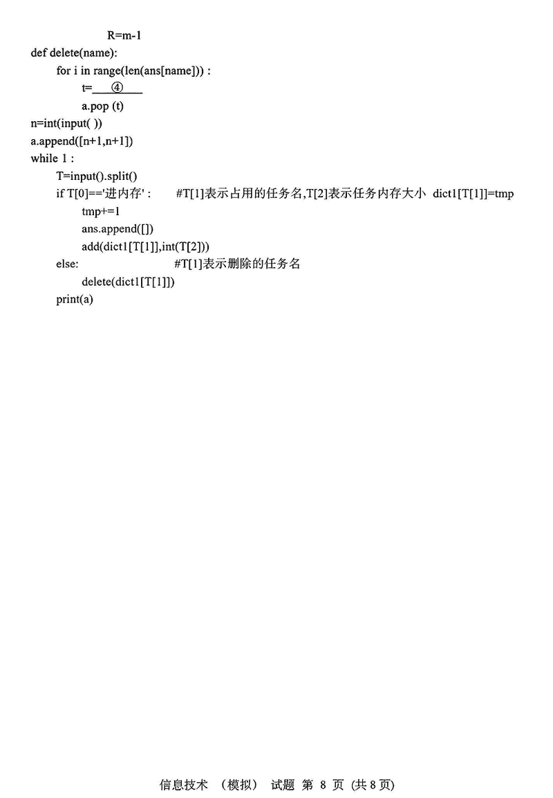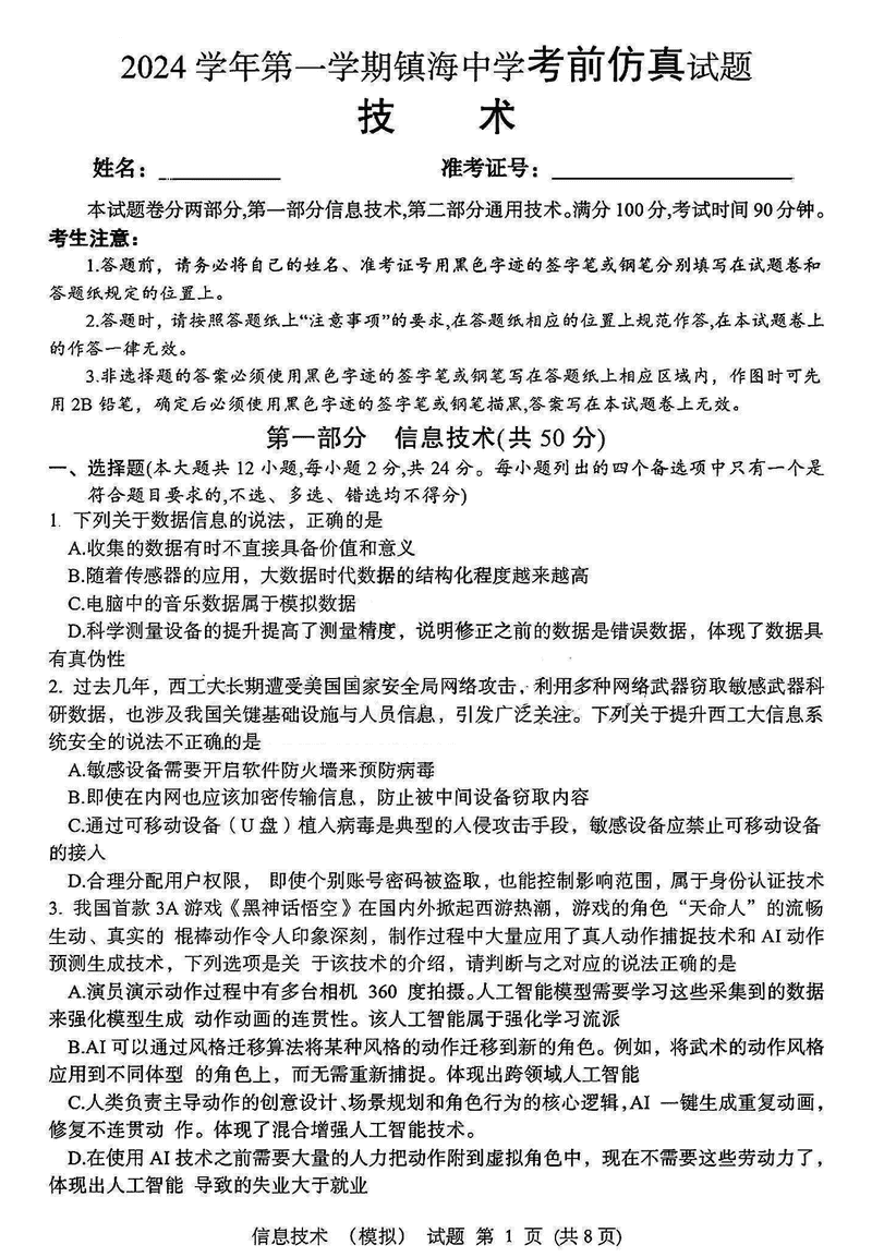浙江镇海中学2025届高三1月首考模拟最后一卷技术试题及答案