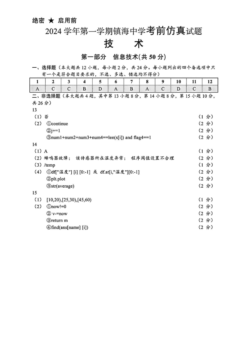 浙江镇海中学2025届高三1月首考模拟最后一卷技术考试已于近日开考,为方便考生考后及时查看考试情况,查漏补缺、弥补不足,本文整理了试题答案解析相关信息!