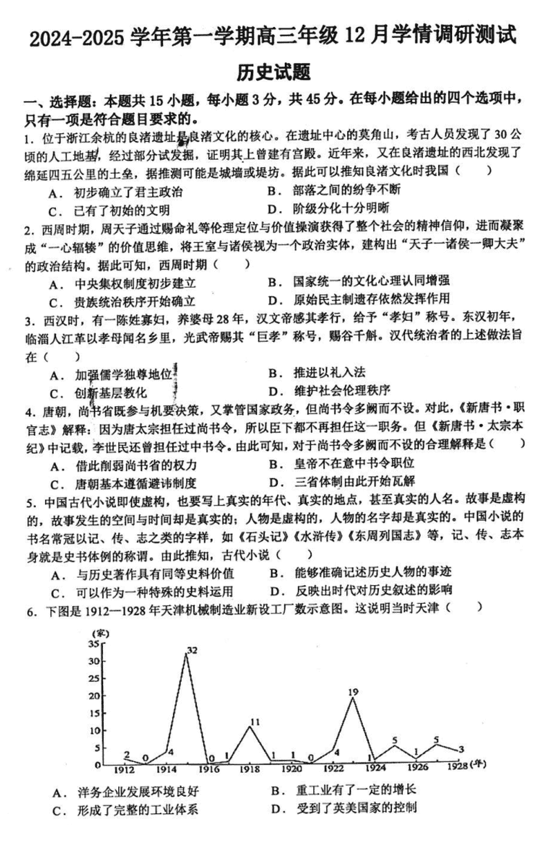 扬州市高邮市2024-2025学年高三上学期12月月考历史考试已于近日开考,为方便考生考后及时查看考试情况,查漏补缺、弥补不足,本文整理了试题答案解析相关信息!