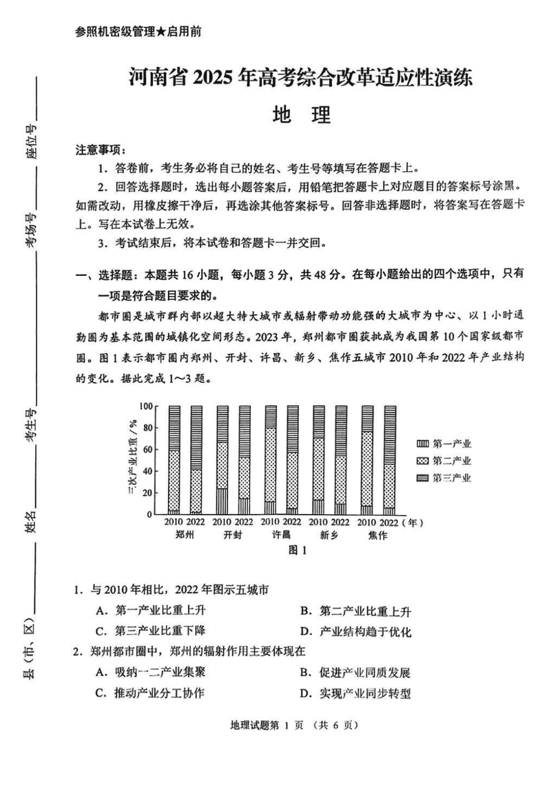 河南八省联考2025年高考综合改革适应性演练地理试题及答案
