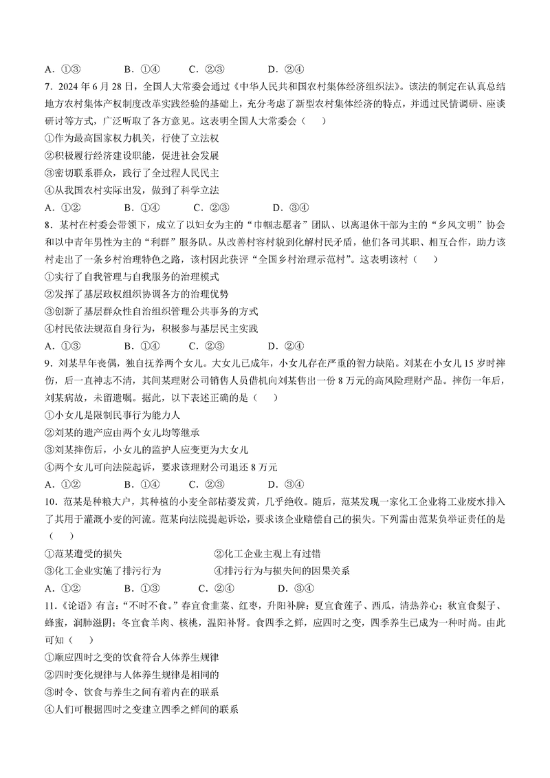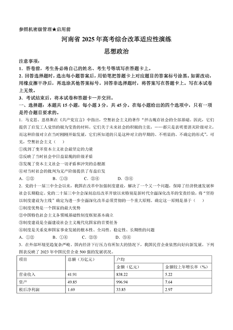 河南八省联考2025年高考综合改革适应性演练政治试题及答案