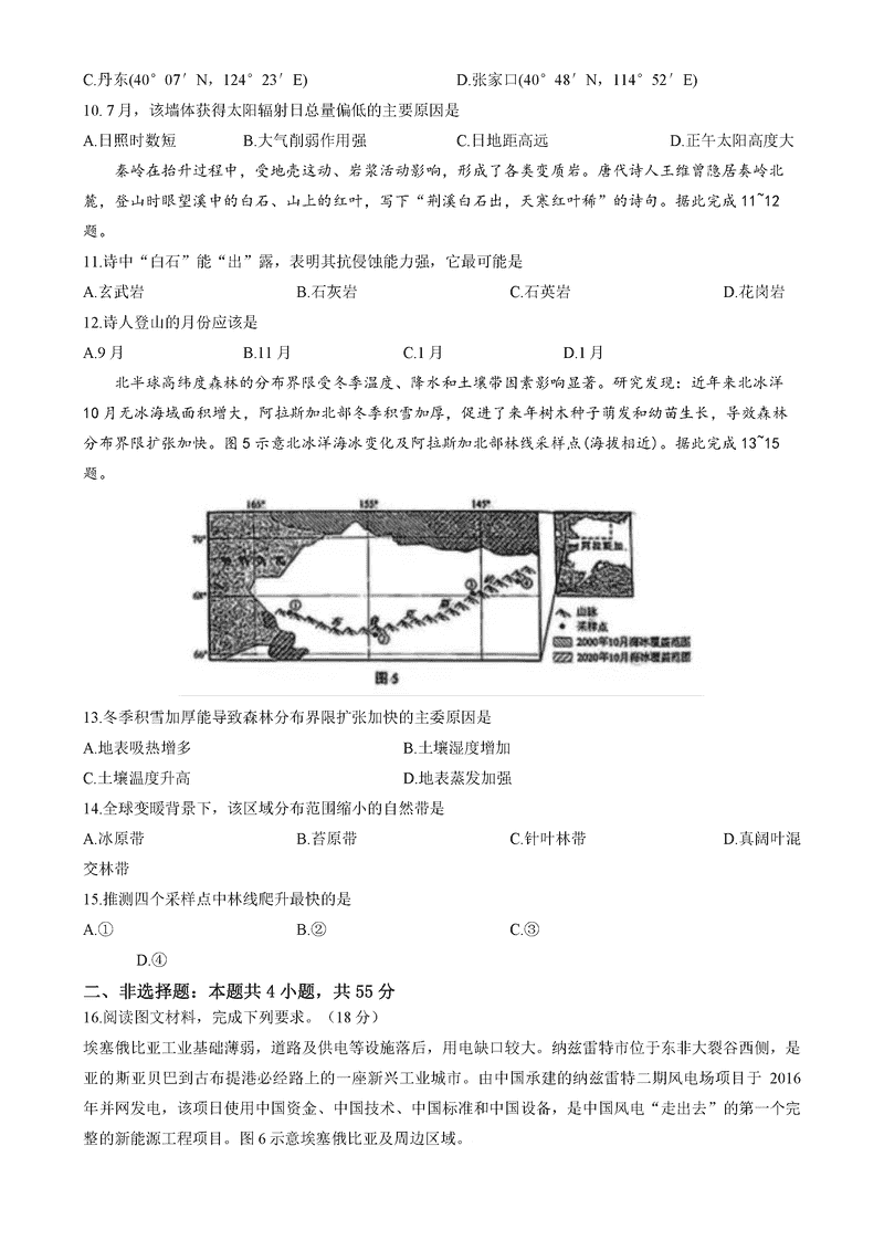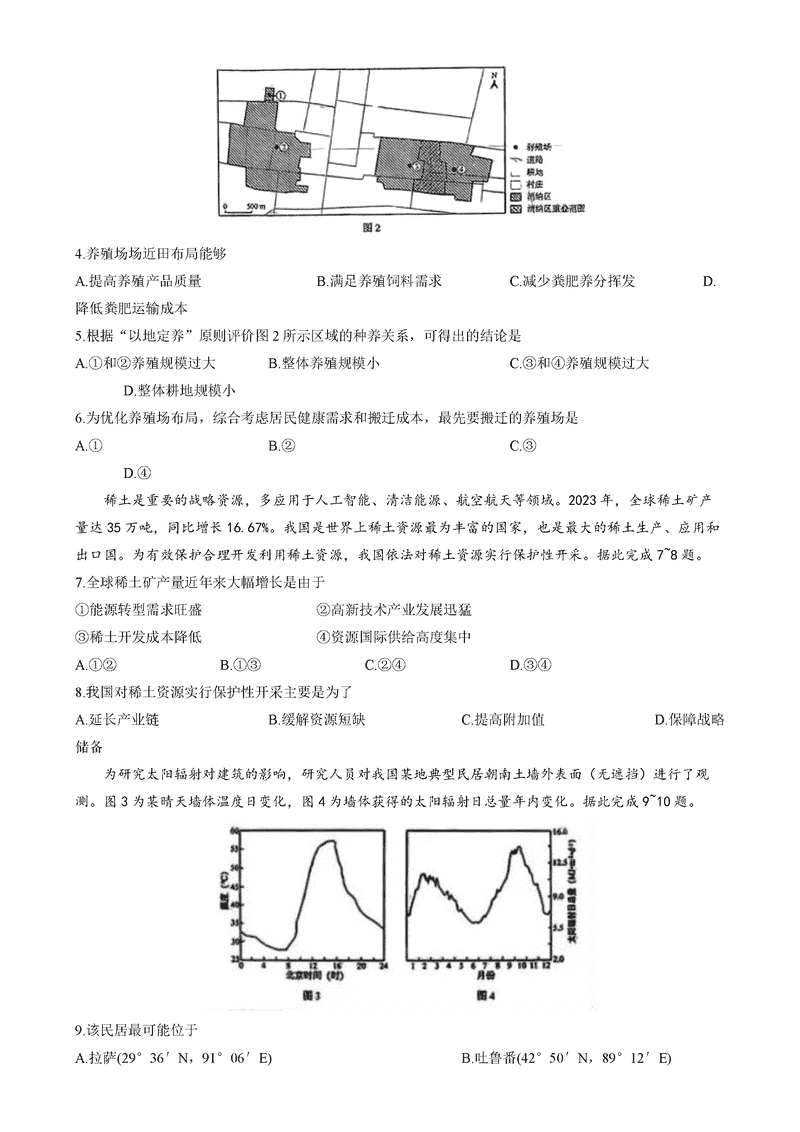 山西、陕西、宁夏、青海2025年1月八省联考地理试题及答案