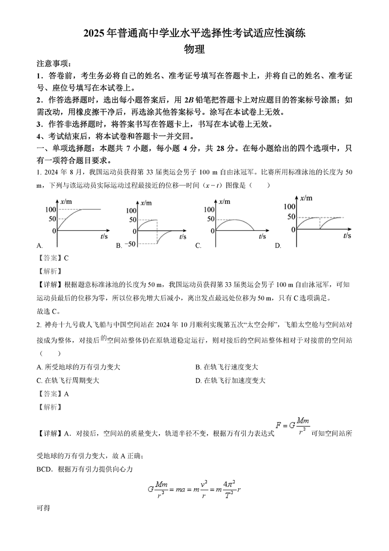 山西、陕西、宁夏、青海2025年1月八省联考物理试题及答案