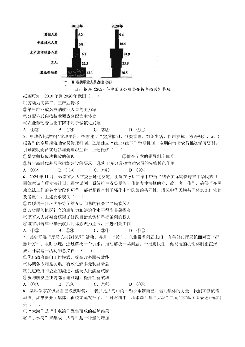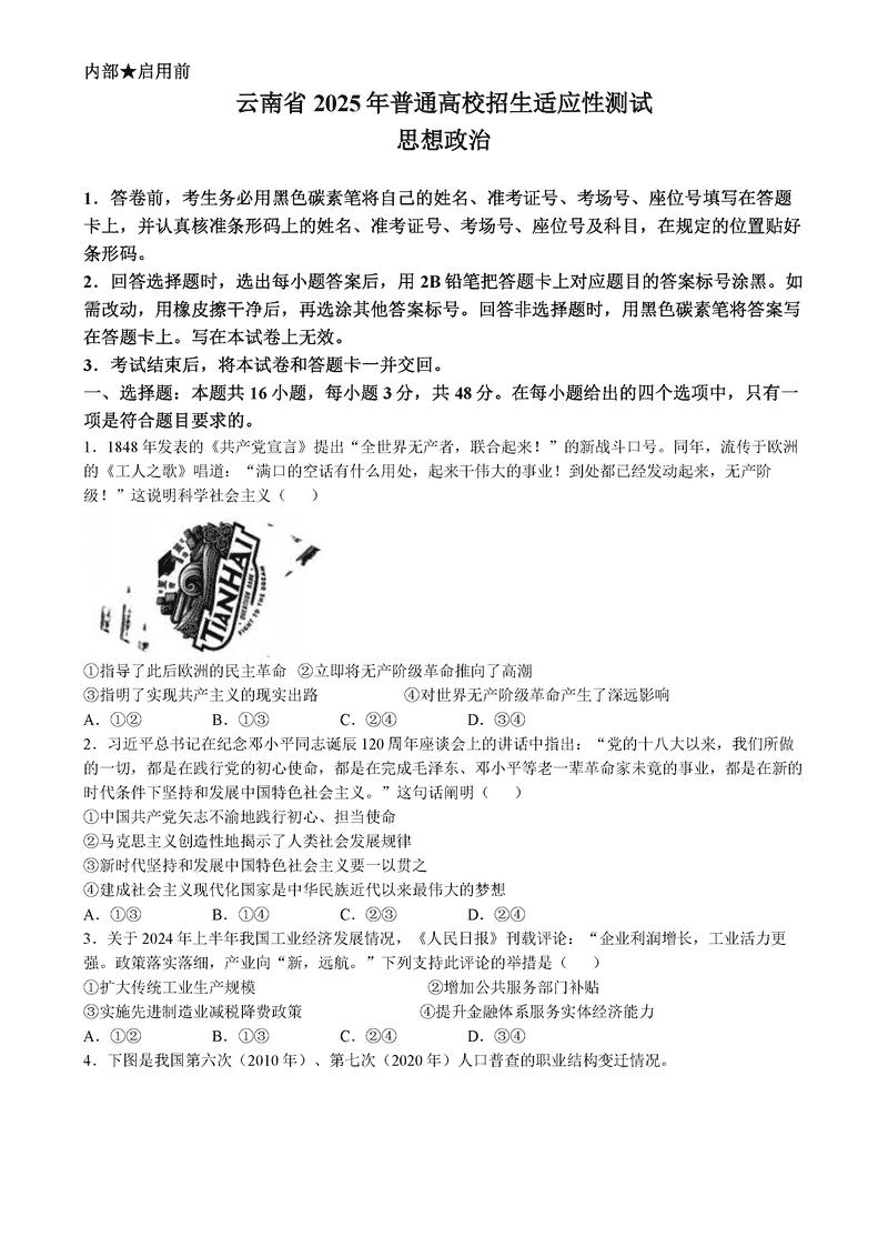 云南八省联考2025年1月高考综合改革适应性演练政治考试已于近日开考,为方便考生考后及时查看考试情况,查漏补缺、弥补不足,本文整理了试题答案解析相关信息!