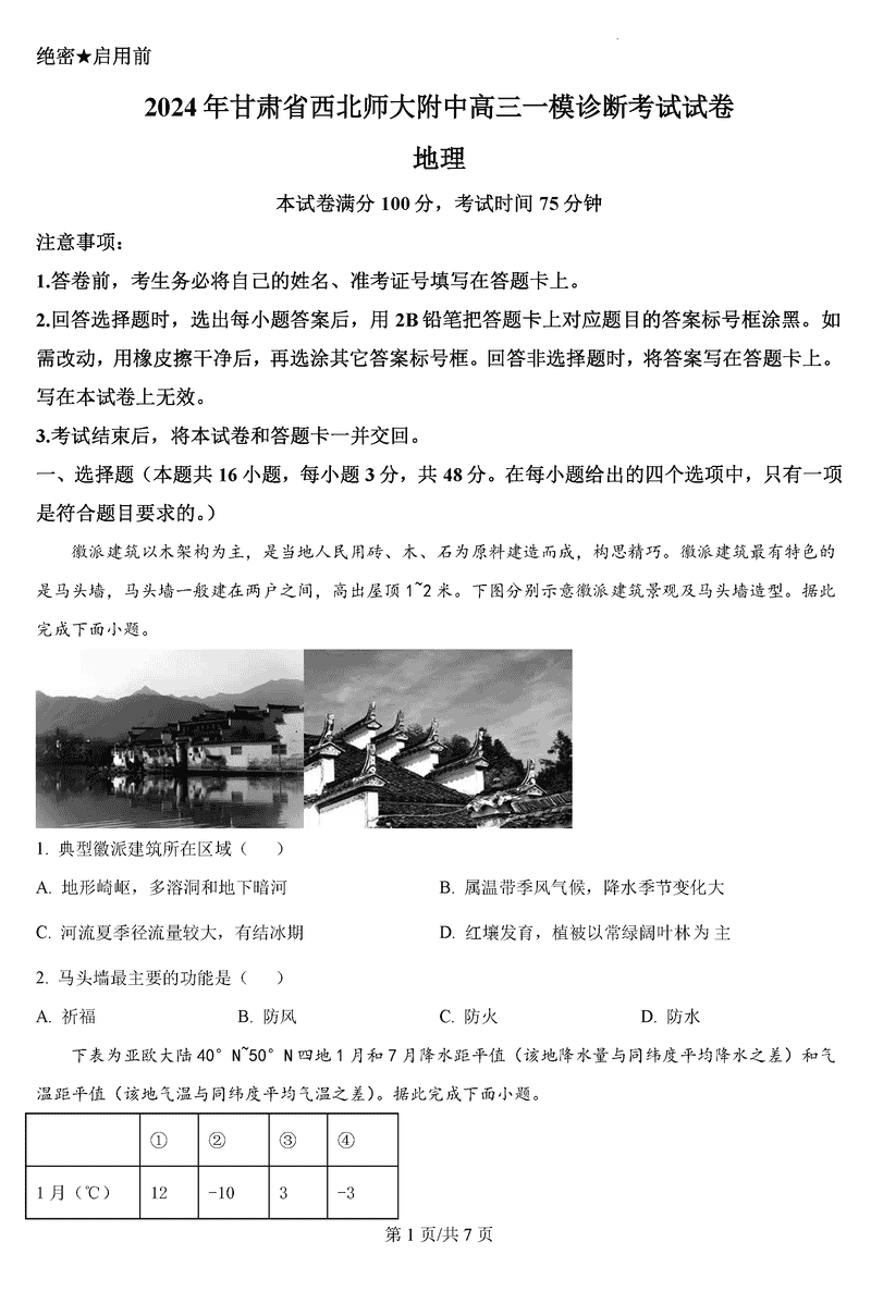 甘肃西北师大附中2025届高三上学期一模地理考试已于近日开考,为方便考生考后及时查看考试情况,查漏补缺、弥补不足,本文整理了试题答案解析相关信息!