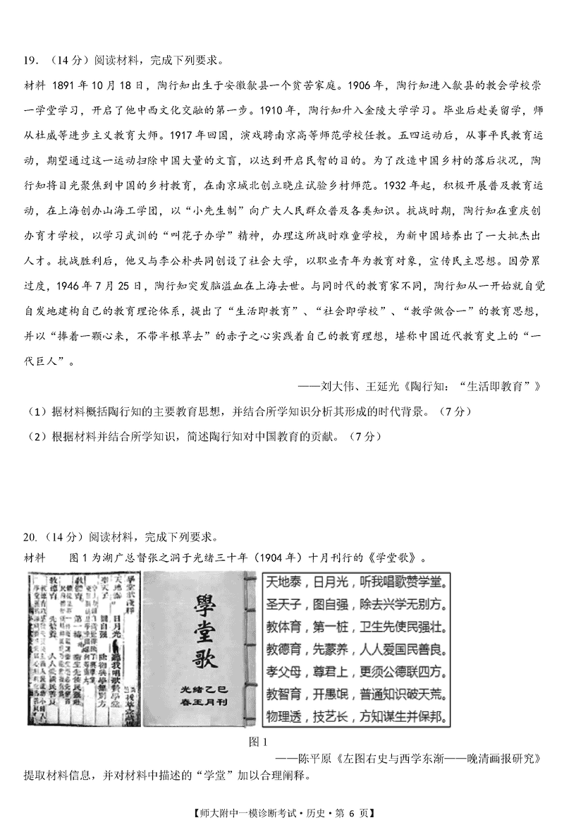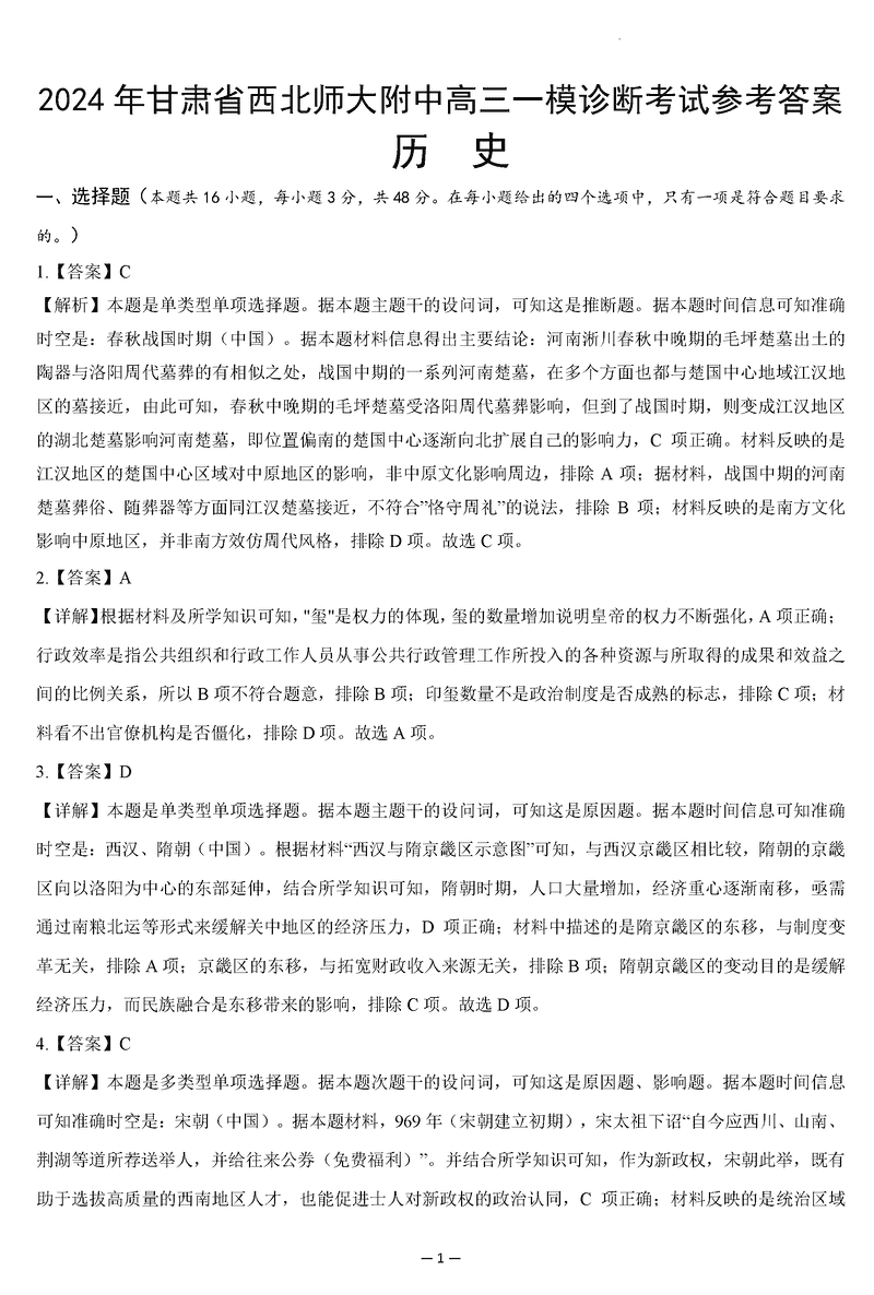 甘肃西北师大附中2025届高三上学期一模历史考试已于近日开考,为方便考生考后及时查看考试情况,查漏补缺、弥补不足,本文整理了试题答案解析相关信息!