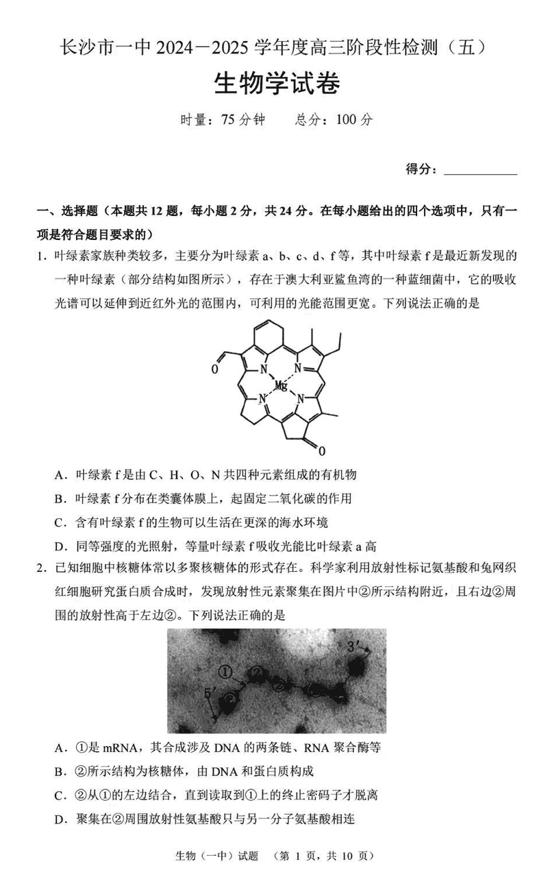 湖南长沙一中2025届高三上学期阶段性检测(五)生物考试已于近日开考,为方便考生考后及时查看考试情况,查漏补缺、弥补不足,本文整理了试题答案解析相关信息!