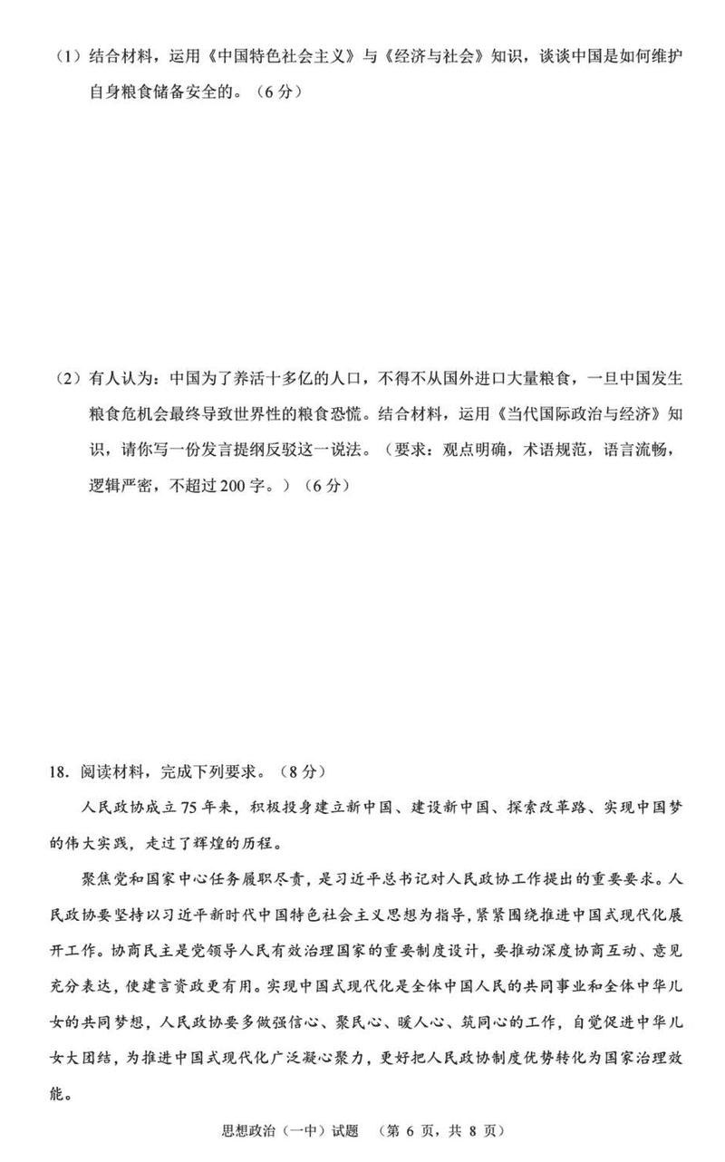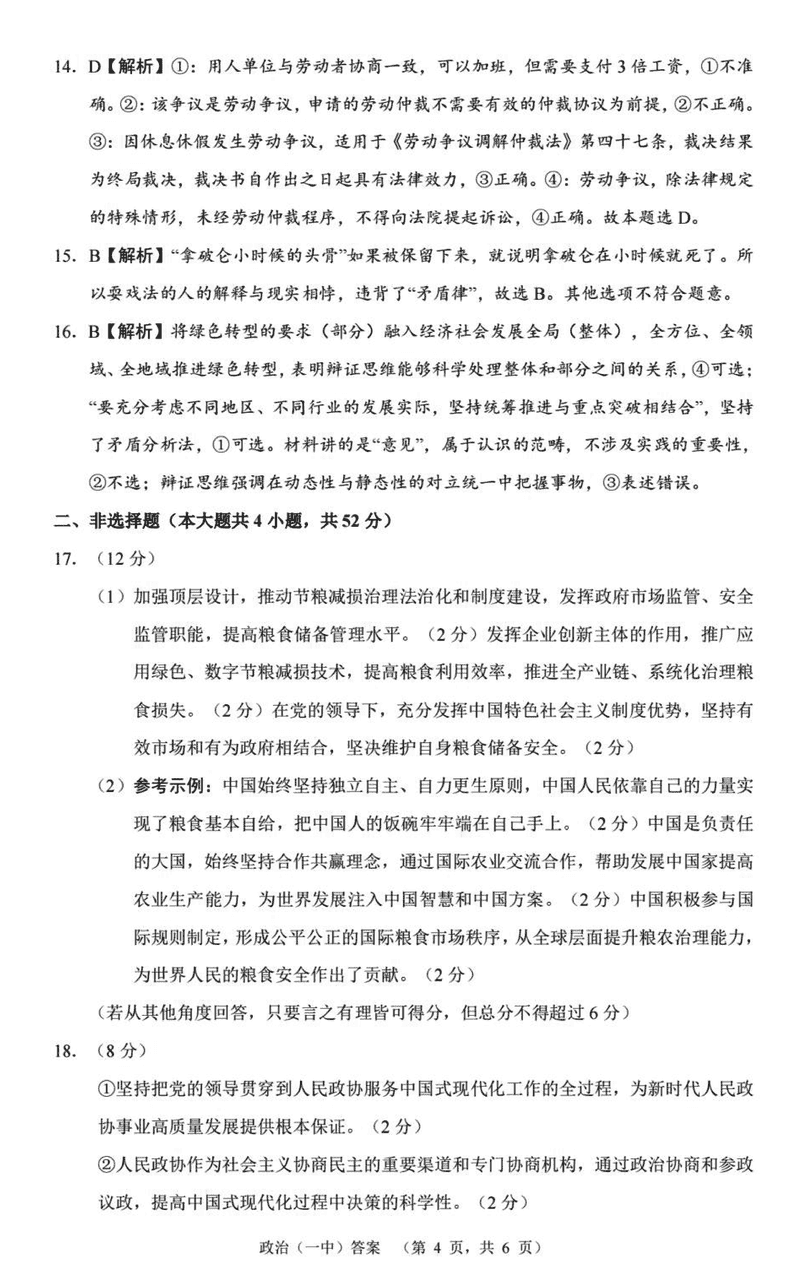 政治试题及答案解析