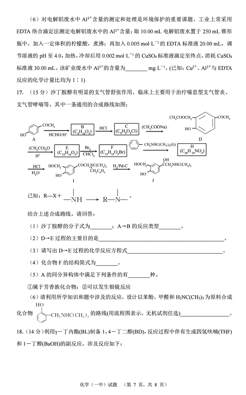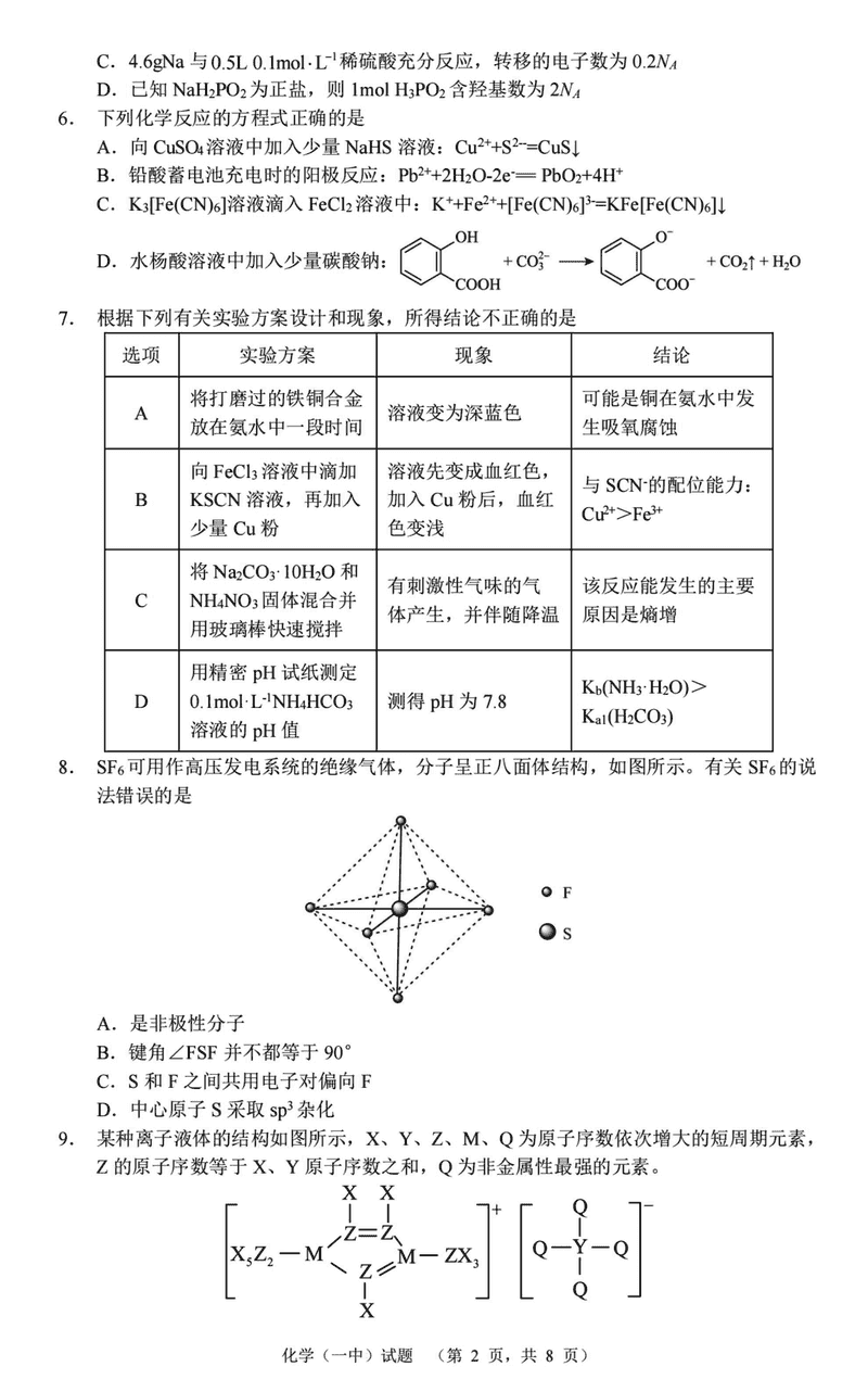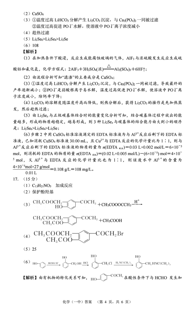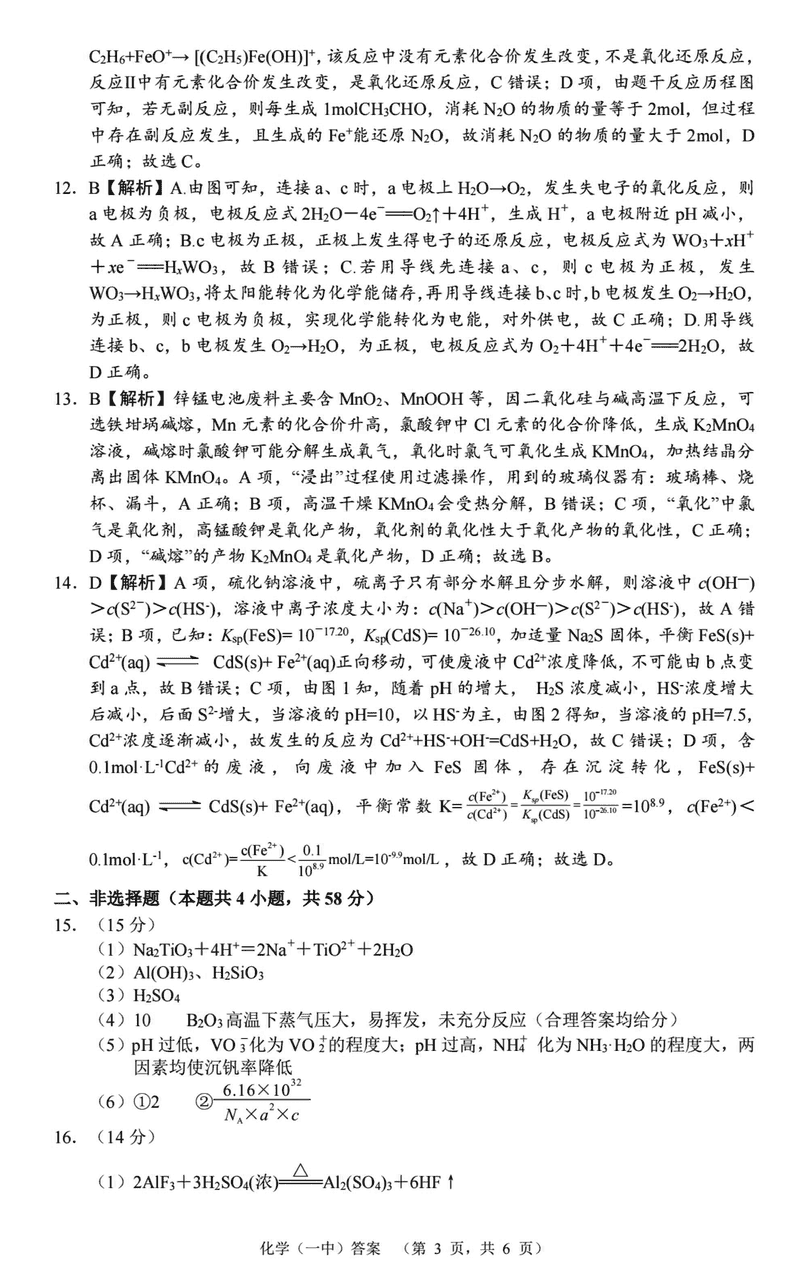 化学试题及答案解析