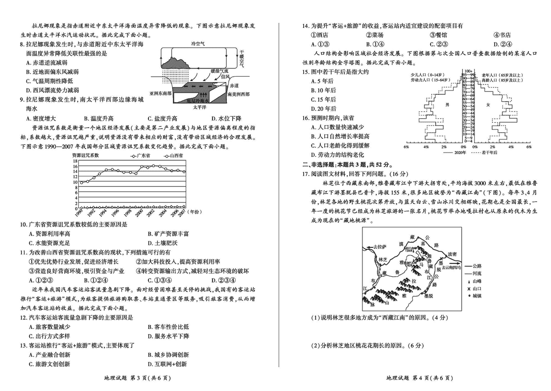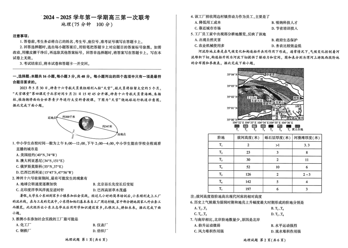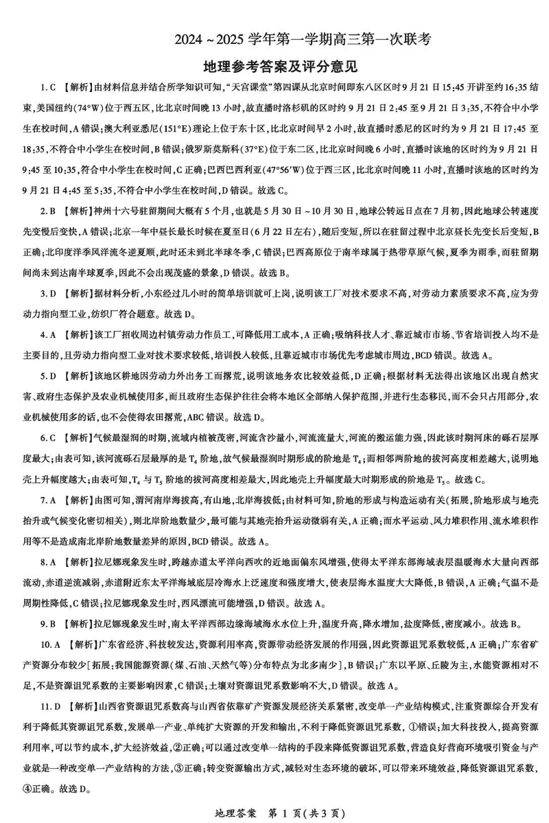 甘肃省部分学校2025届高三上学期第一次联考地理试题及答案