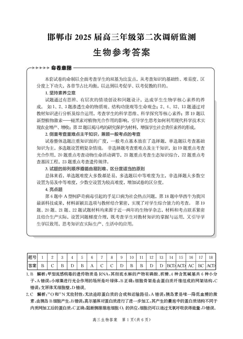 河北邯郸2025届高三上学期第二次调研监测生物考试已于近日开考,为方便考生考后及时查看考试情况,查漏补缺、弥补不足,本文整理了试题答案解析相关信息!