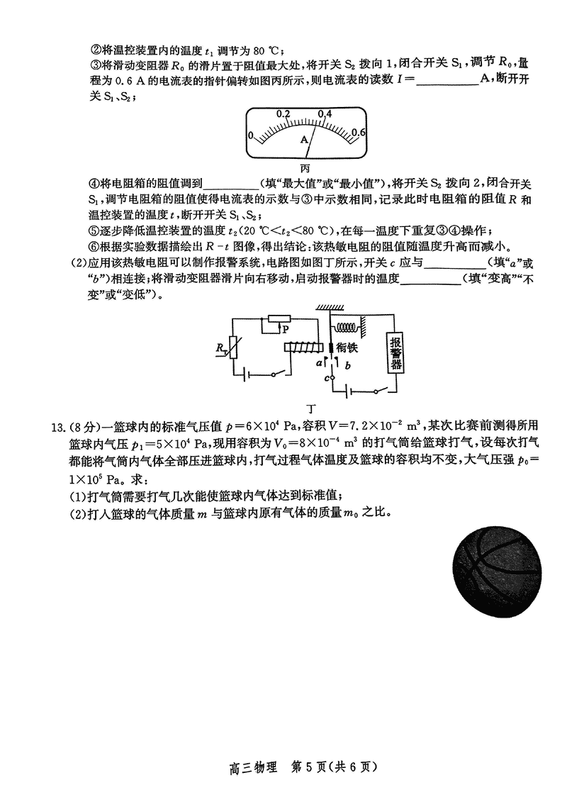河北邯郸2025届高三上学期第二次调研监测物理试题及答案