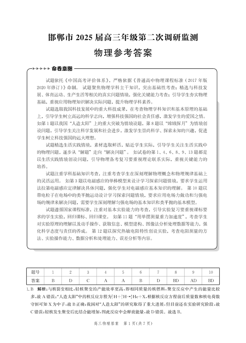 河北邯郸2025届高三上学期第二次调研监测物理考试已于近日开考,为方便考生考后及时查看考试情况,查漏补缺、弥补不足,本文整理了试题答案解析相关信息!