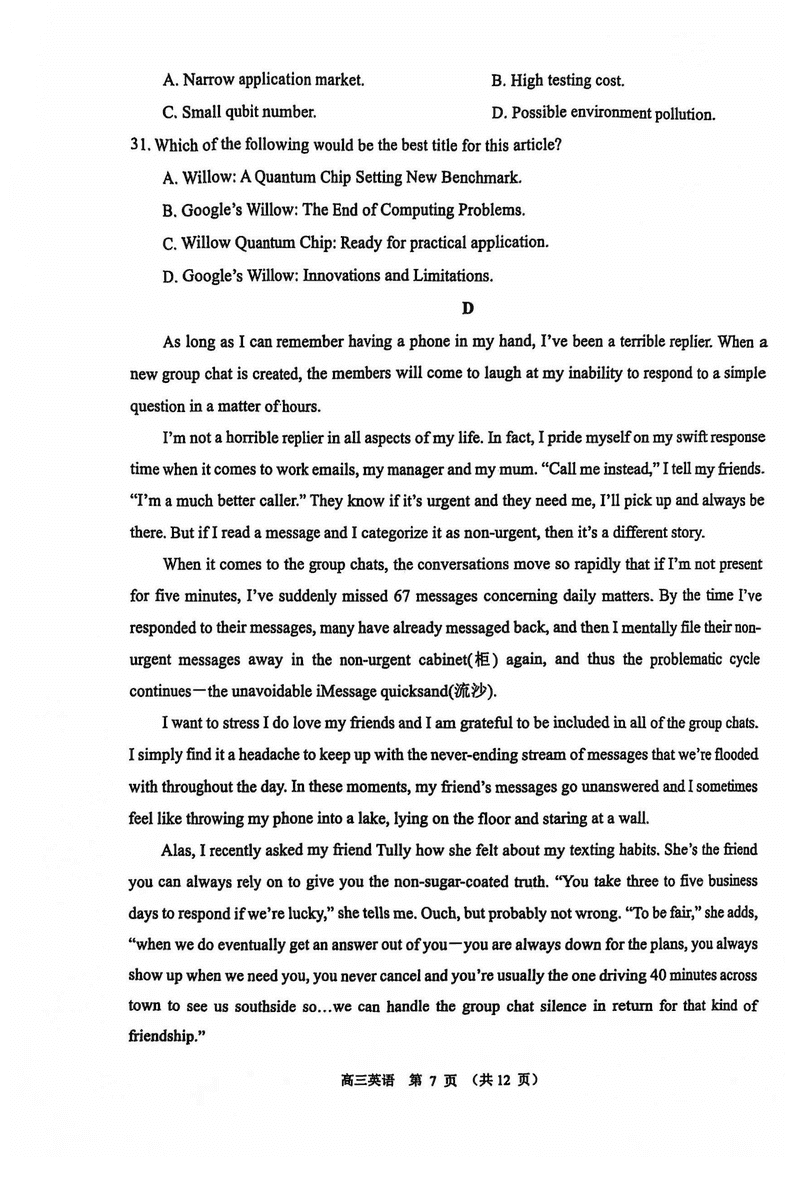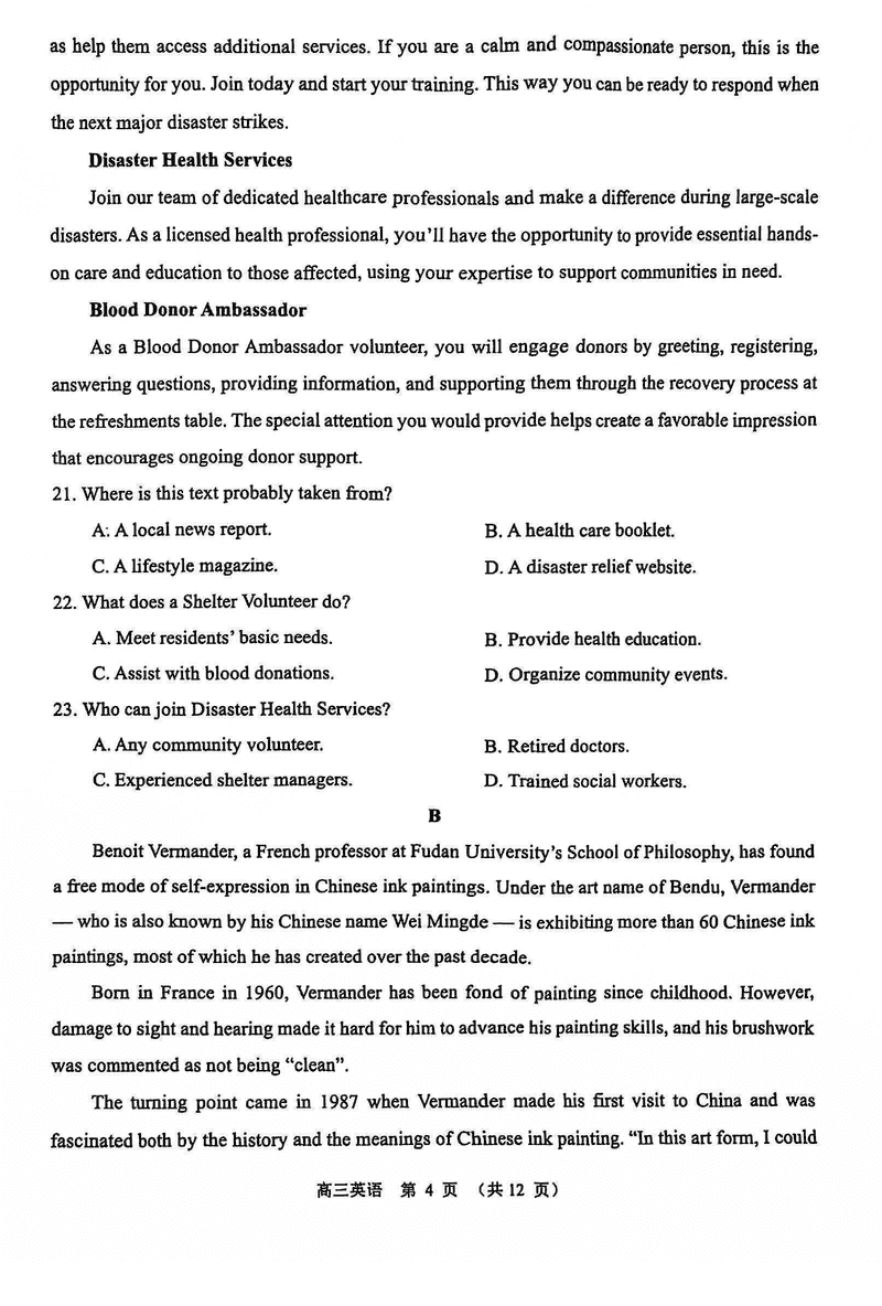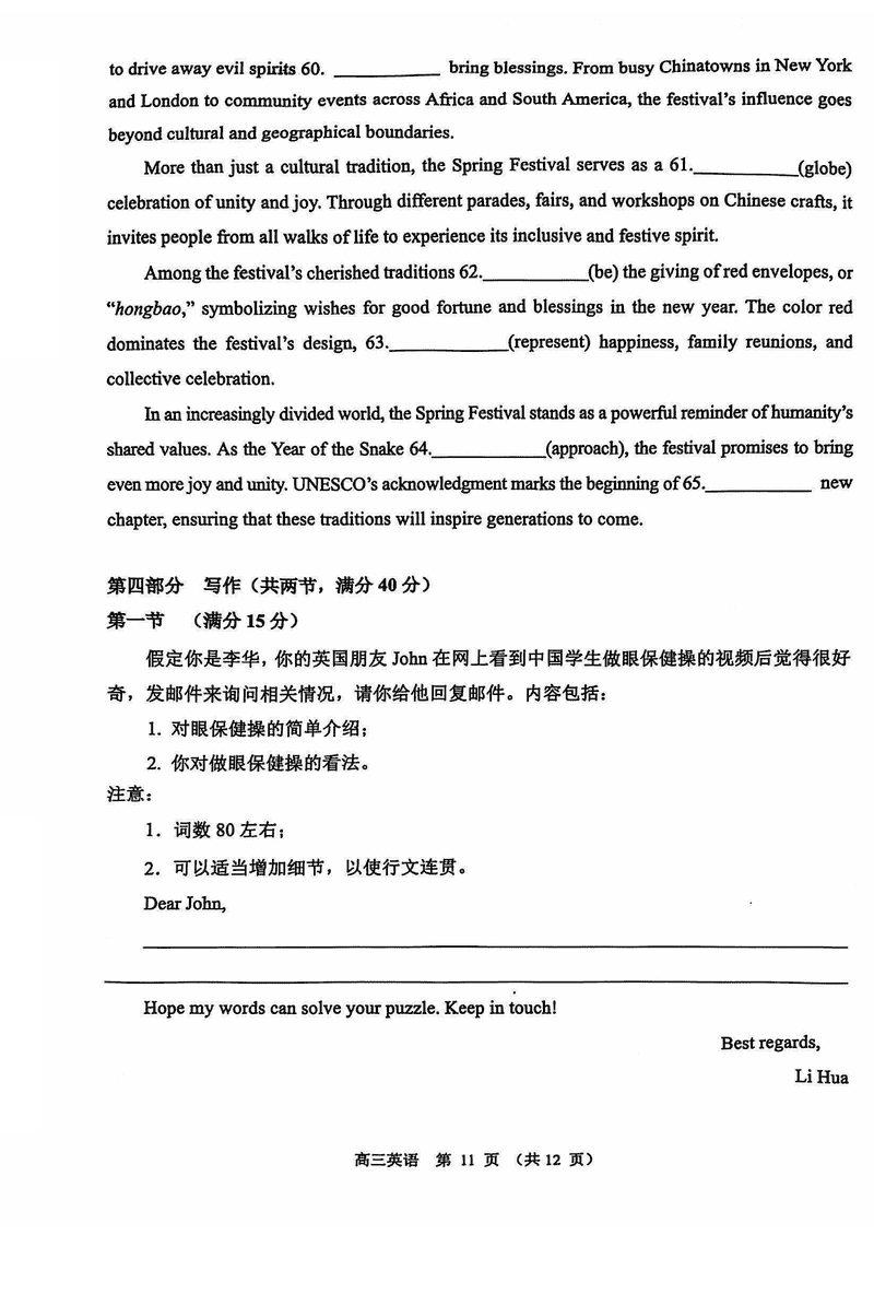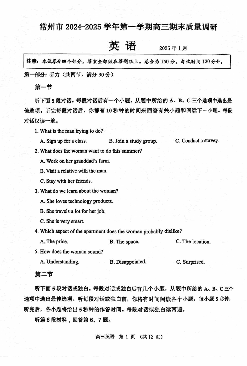 常州市2024-2025学年高三上学期期末英语试题及答案