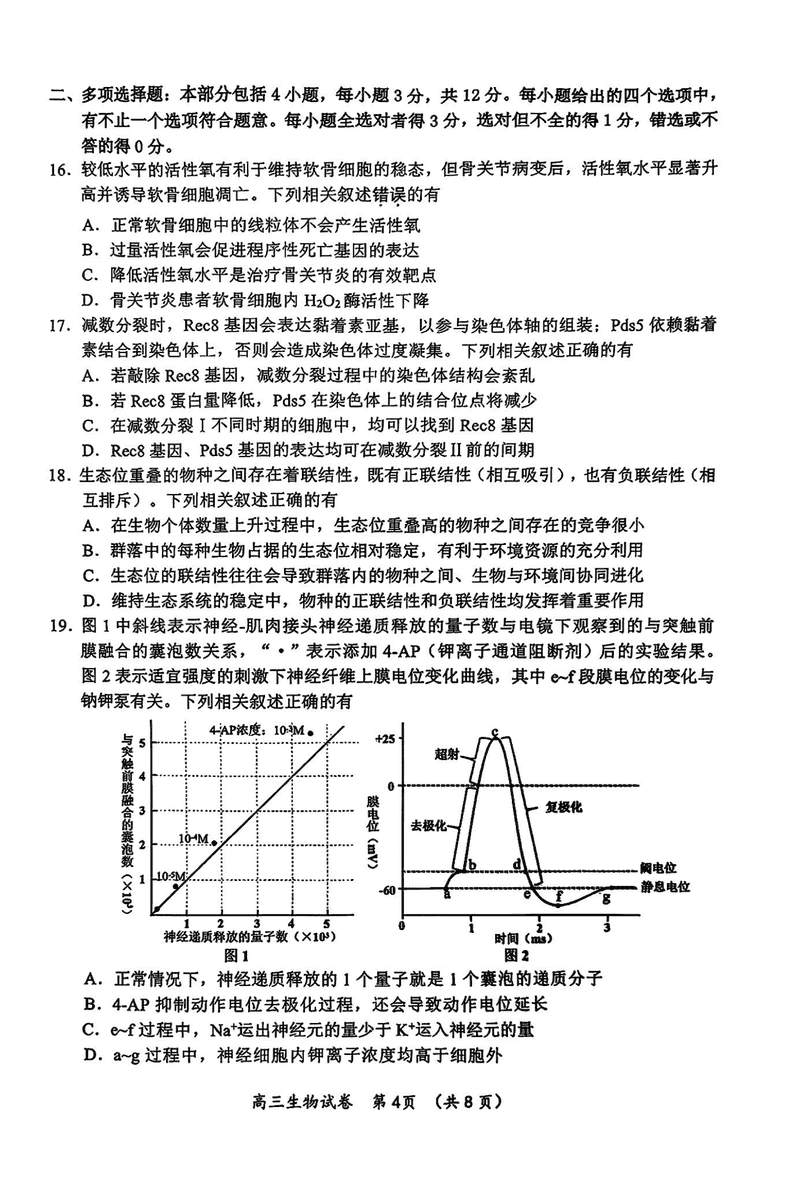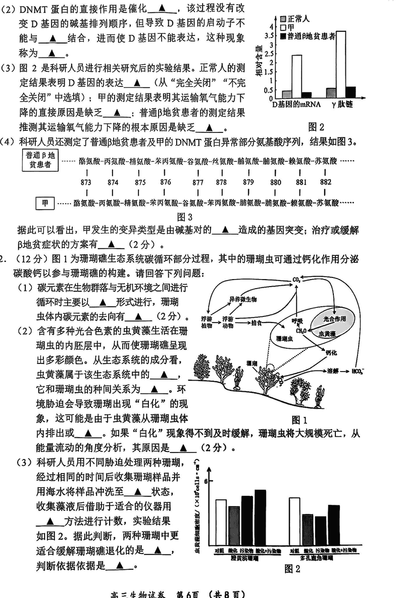 江苏省常州市2024-2025学年高三上学期期末生物考试已于近日开考,为方便考生考后及时查看考试情况,查漏补缺、弥补不足,本文整理了试题答案解析相关信息!