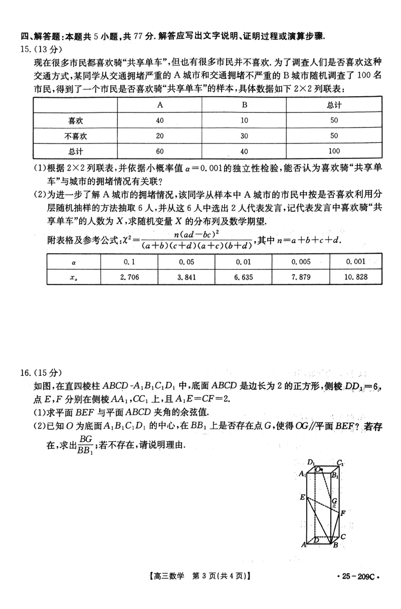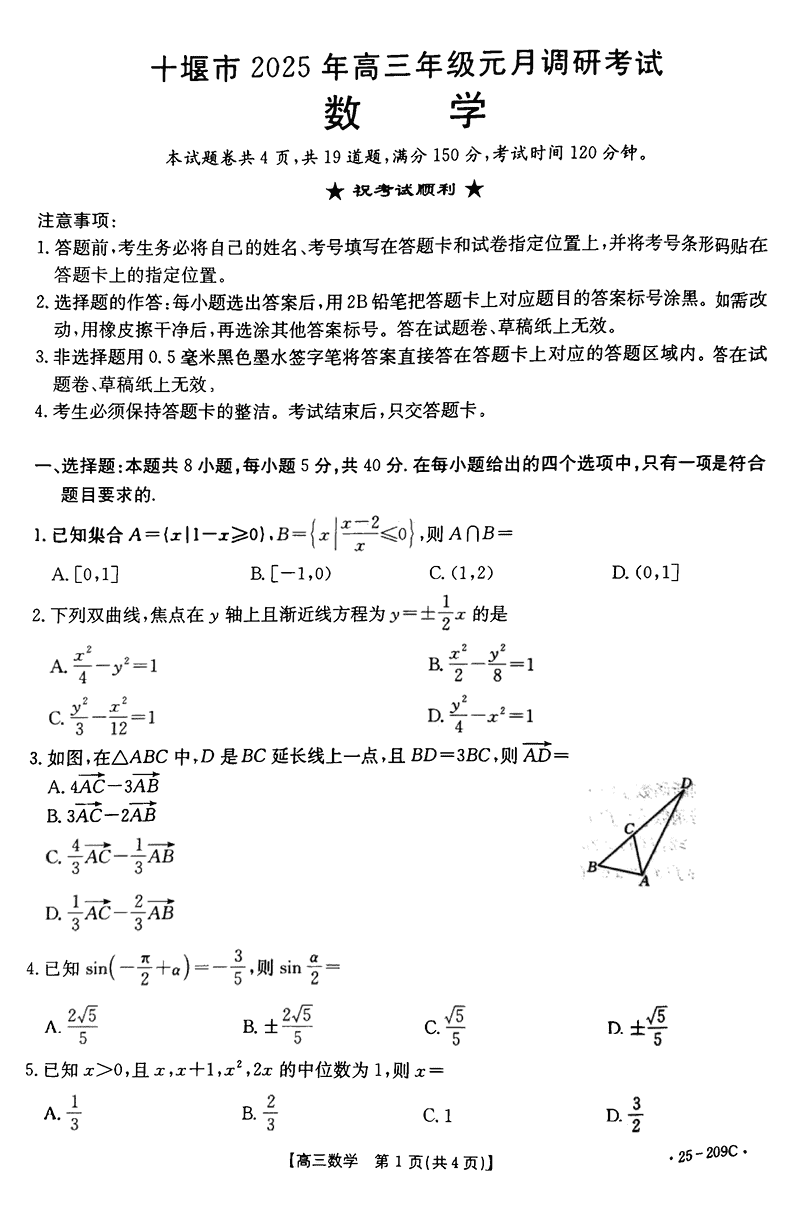 湖北十堰2025届高三元月调研数学试题及答案 时间:2025-01-10 湖北 数学试题 湖北十堰2025届高三元月调研数学考试已于近日开考,为方便考生考后及时查看考试情况,查漏补缺、弥补不足,本文整理了试题答案解析相关信息! 汇总:湖北十堰2025届高三元月调研考试试题及答案汇总 数学试题及答案解析