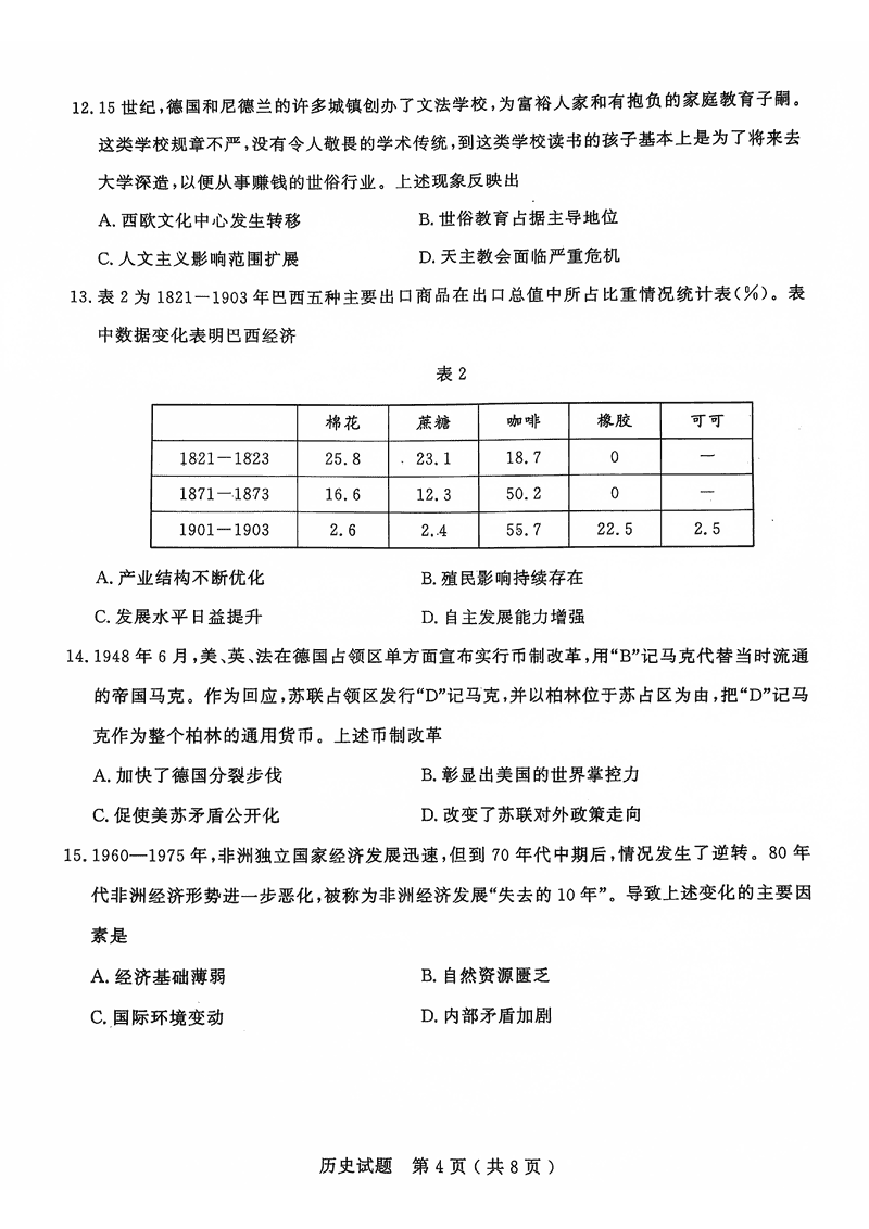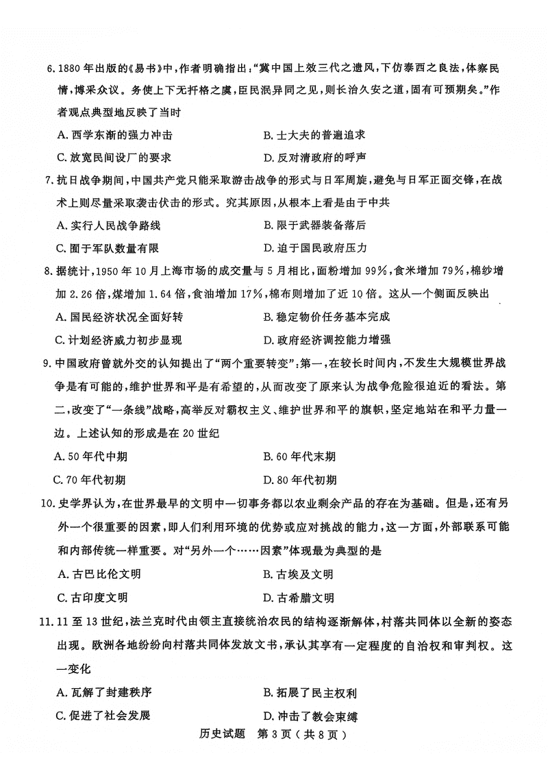 历史试题及答案解析