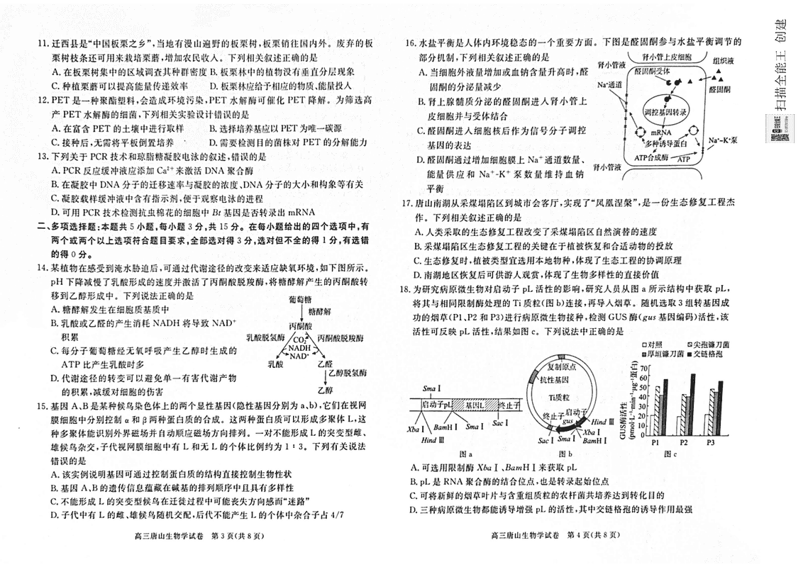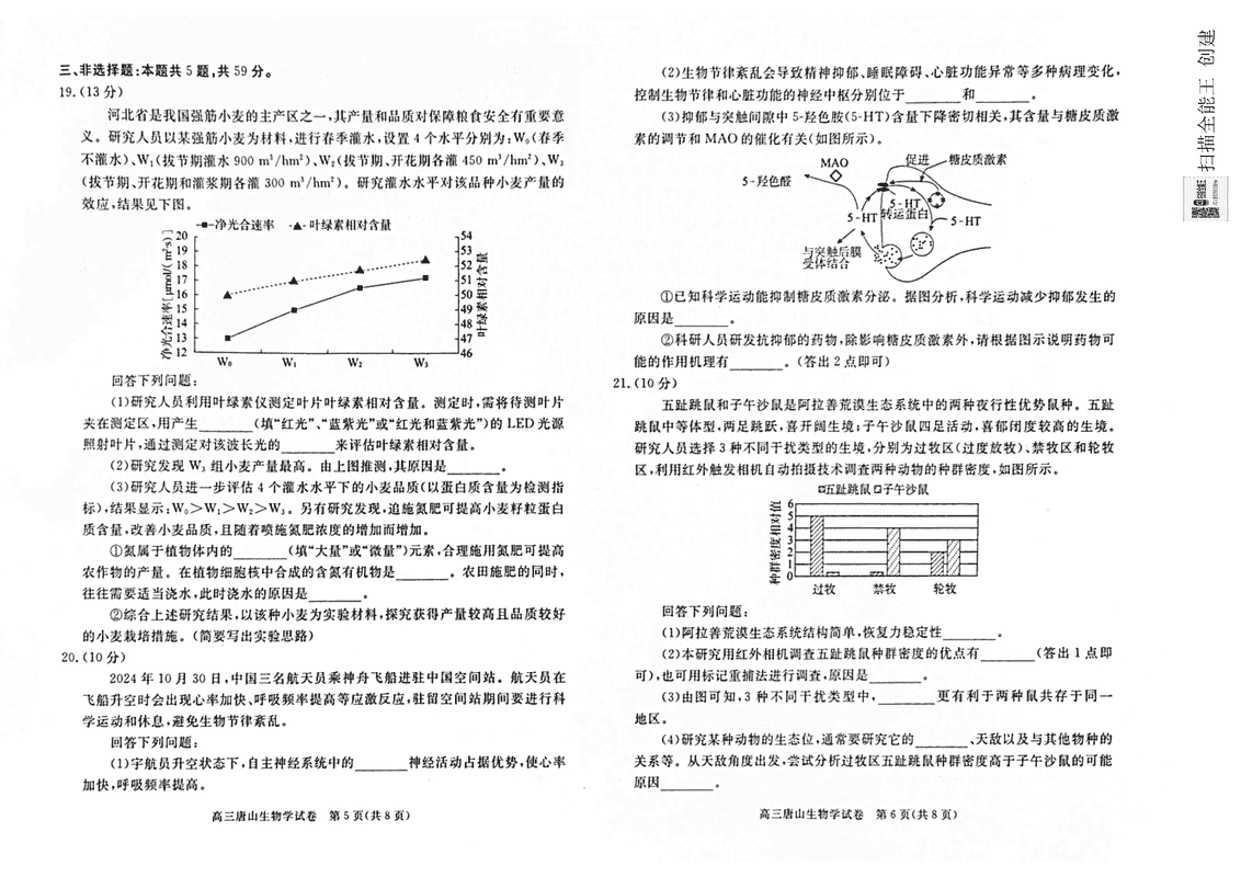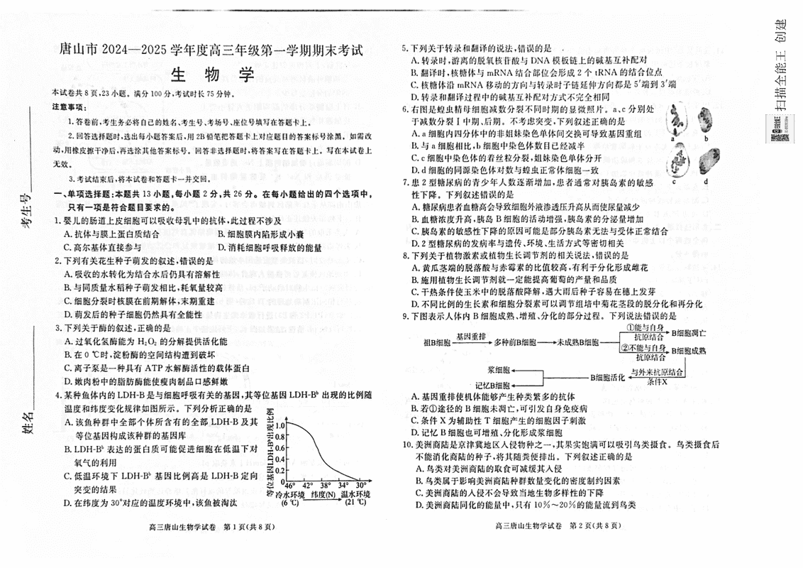 河北唐山2024-2025学年高三上学期1月期末生物考试已于近日开考,为方便考生考后及时查看考试情况,查漏补缺、弥补不足,本文整理了试题答案解析相关信息!