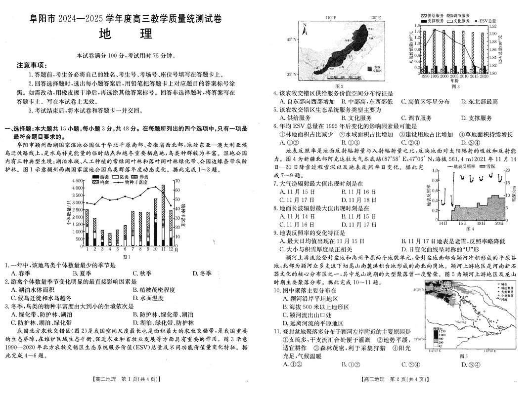 安徽阜阳2025届高三上学期教学质量统测地理试题及答案