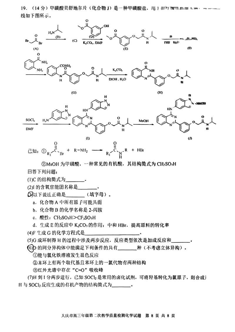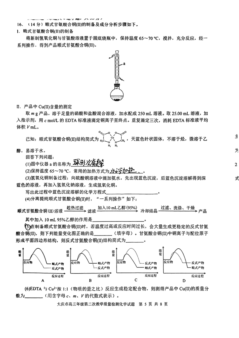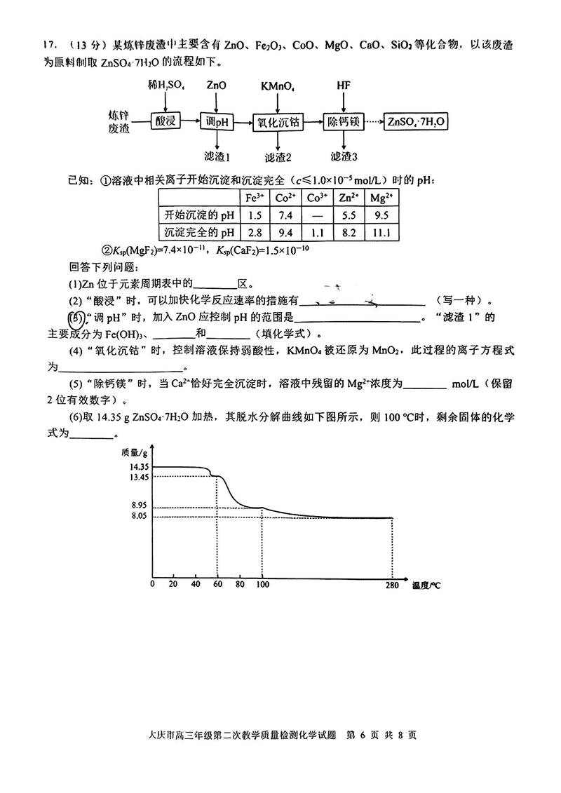 黑龙江大庆二模2025届高三年级第二次教学质检化学考试已于近日开考,为方便考生考后及时查看考试情况,查漏补缺、弥补不足,本文整理了试题答案解析相关信息!
