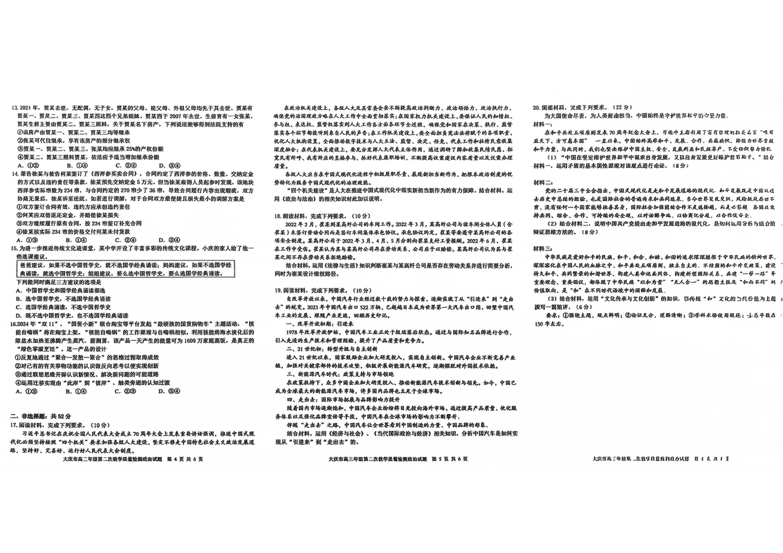 大庆二模2025届高三年级第二次教学质检政治试题及答案