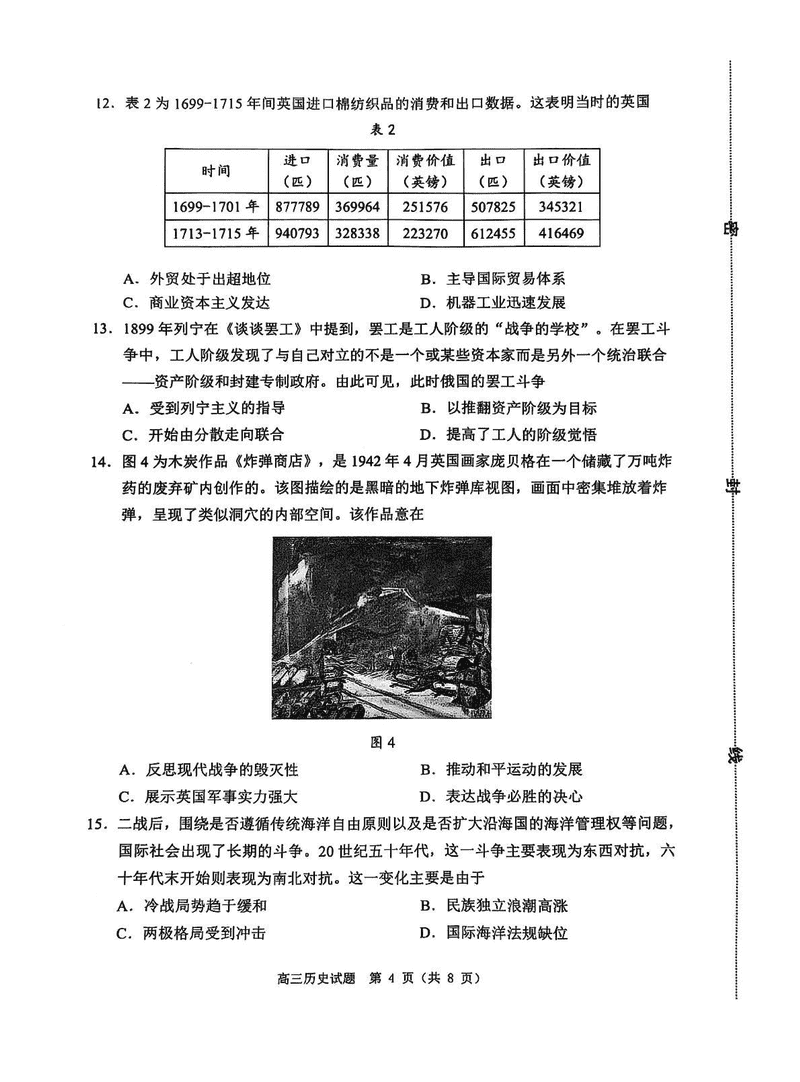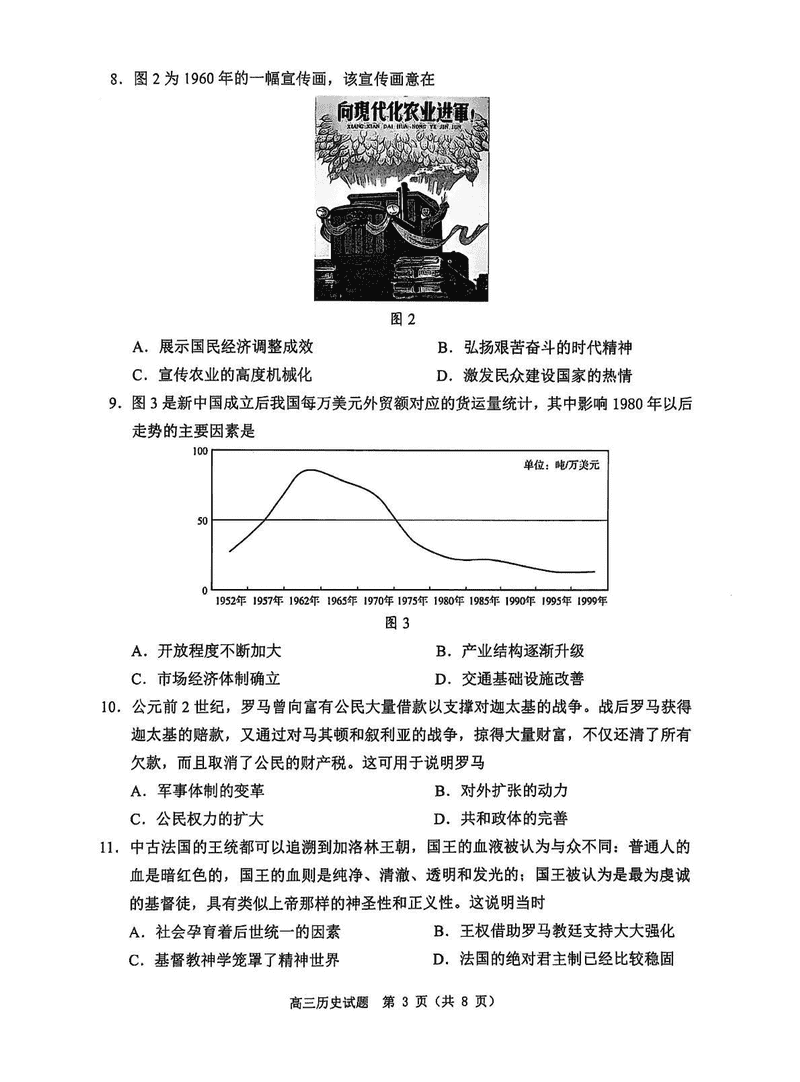 山东淄博2024-2025学年高三上期末历史试题及答案