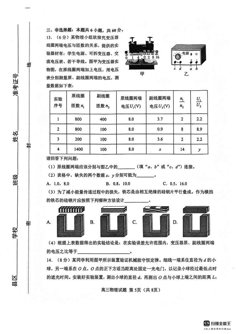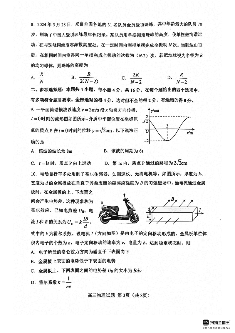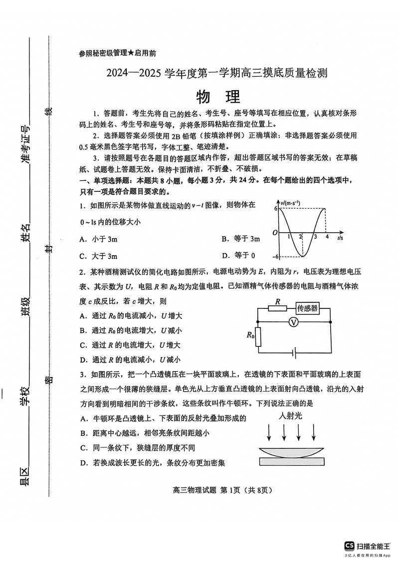 山东淄博2024-2025学年高三上期末物理考试已于近日开考,为方便考生考后及时查看考试情况,查漏补缺、弥补不足,本文整理了试题答案解析相关信息!