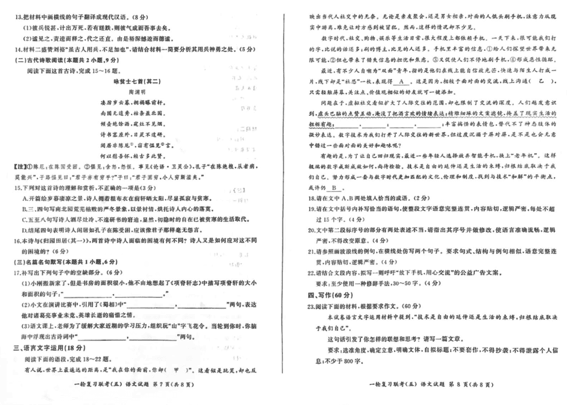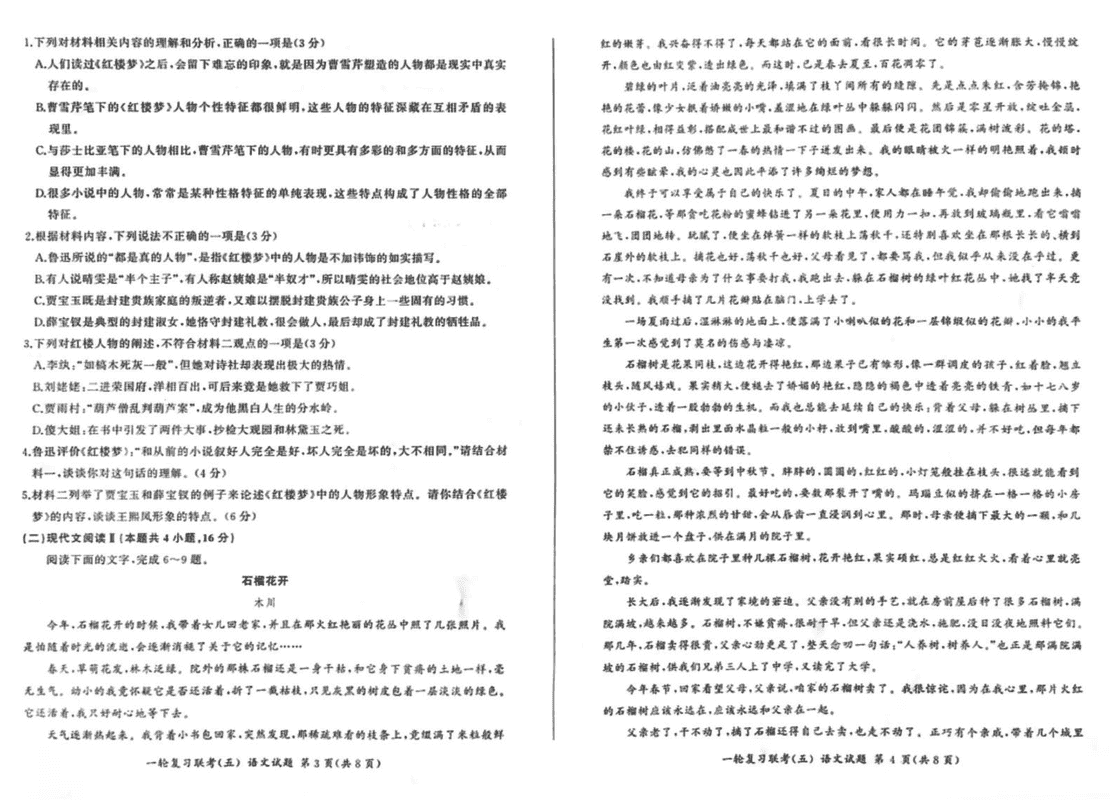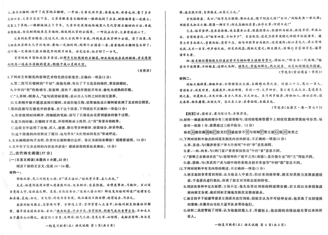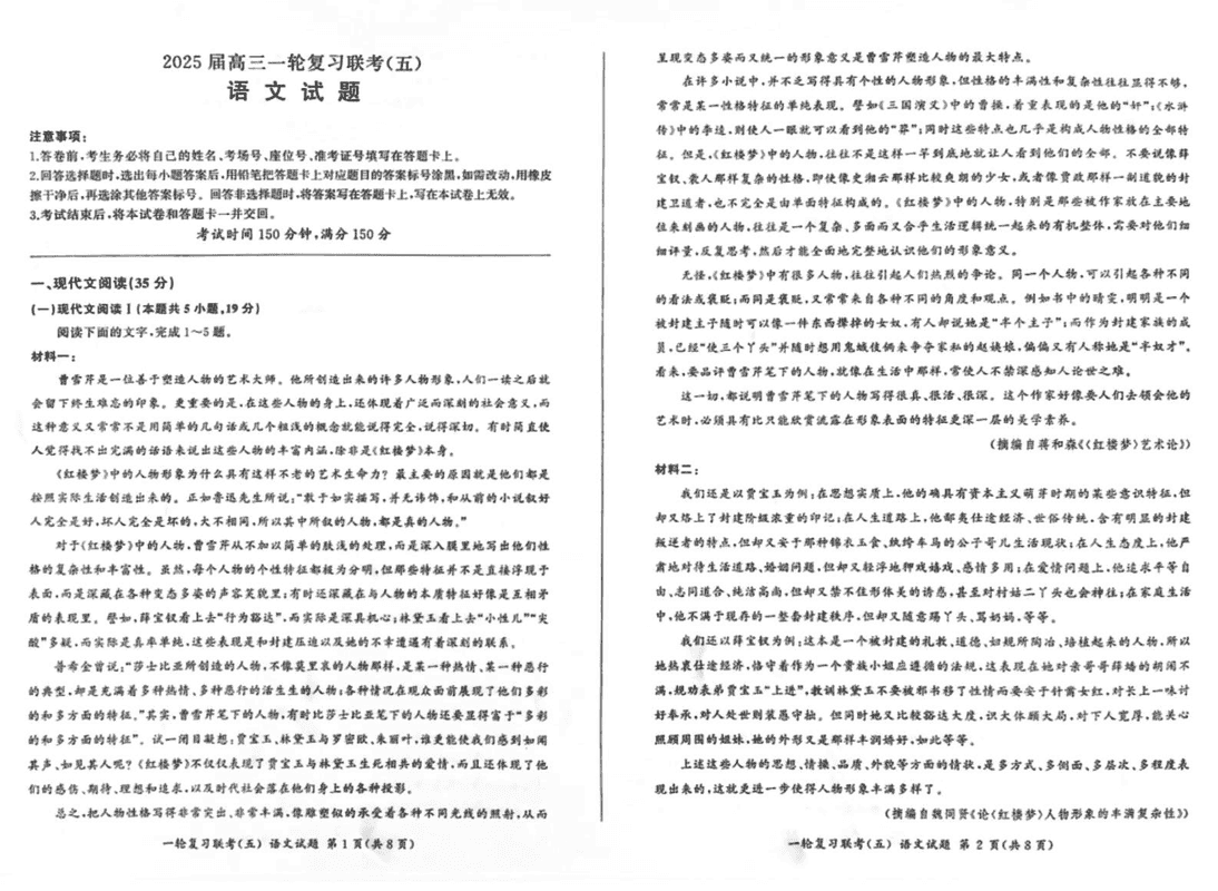 百师联盟2025届高三一轮复习联考(五)语文试题及答案
