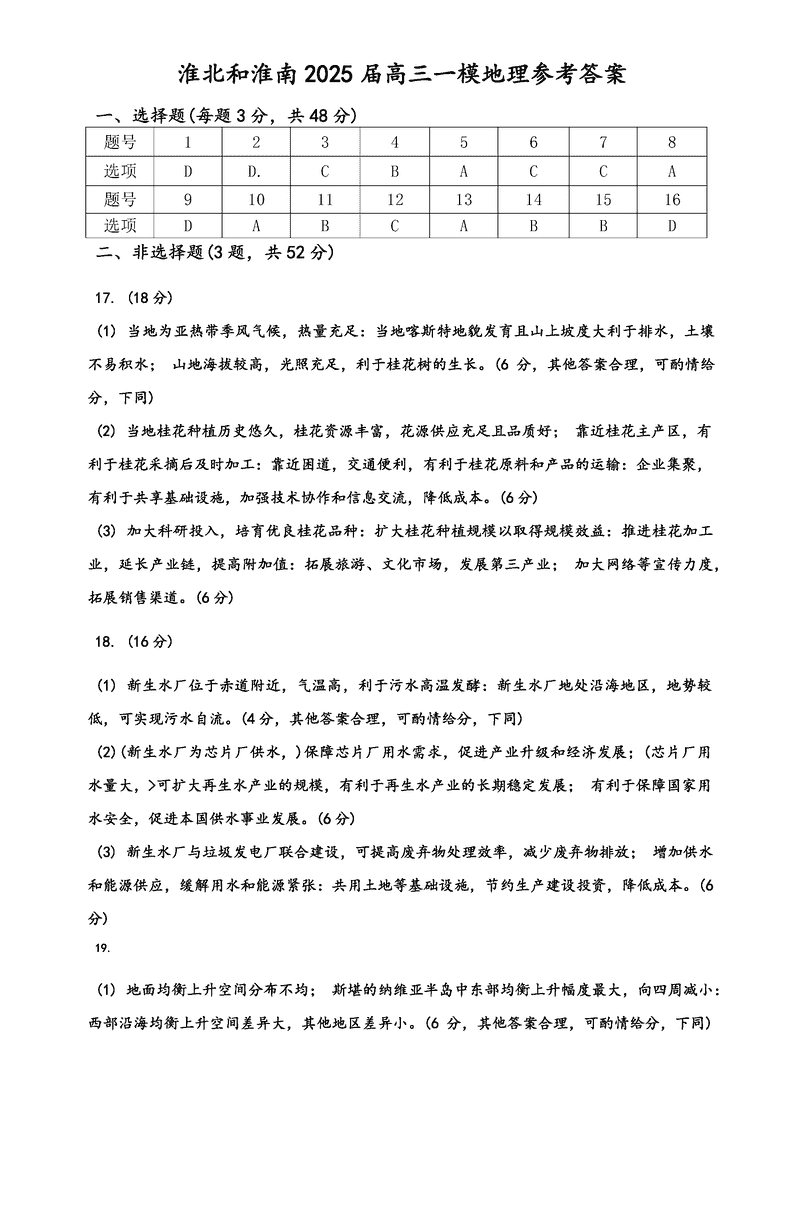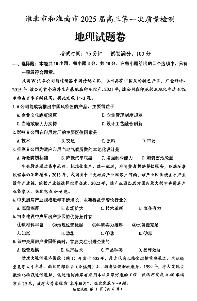 淮南市、淮北市2025届高三上学期第一次质检地理考试已于近日开考,为方便考生考后及时查看考试情况,查漏补缺、弥补不足,本文整理了试题答案解析相关信息!