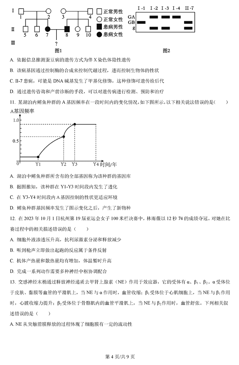 淮南市、淮北市2025届高三上学期第一次质检生物试题及答案