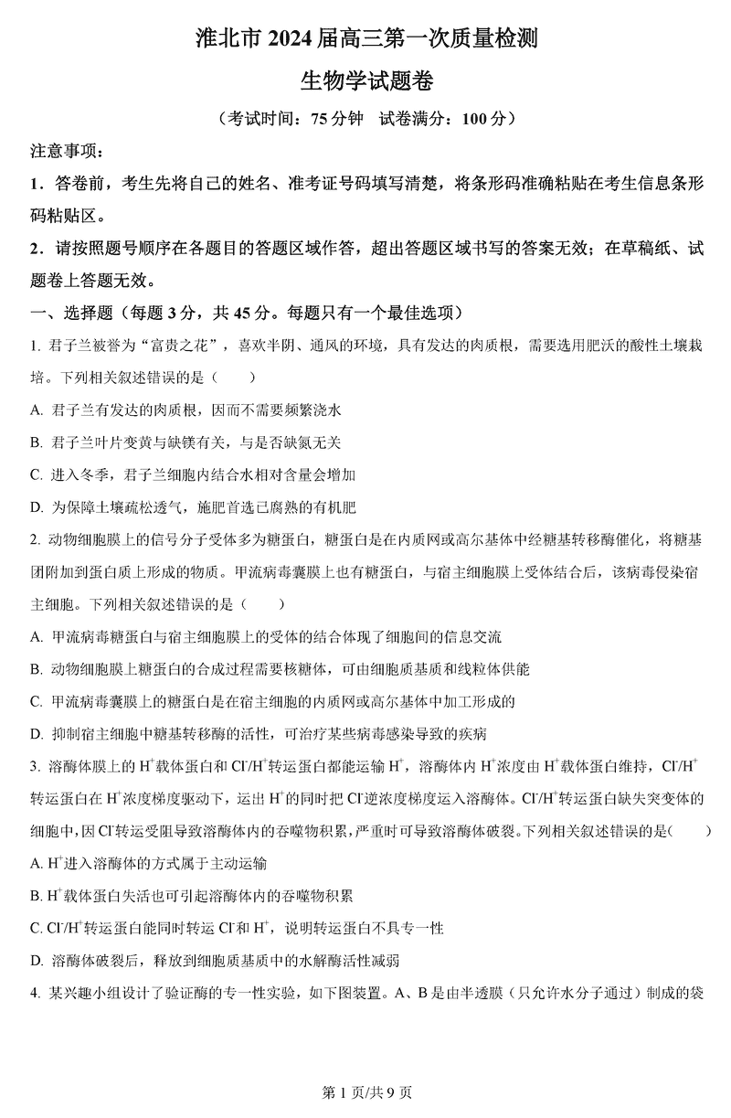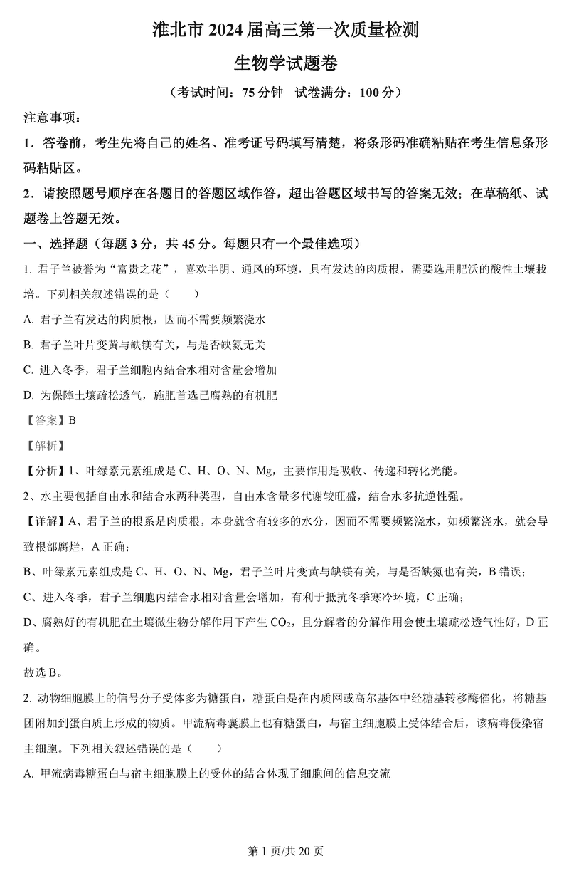 淮南市、淮北市2025届高三上学期第一次质检生物考试已于近日开考,为方便考生考后及时查看考试情况,查漏补缺、弥补不足,本文整理了试题答案解析相关信息!
