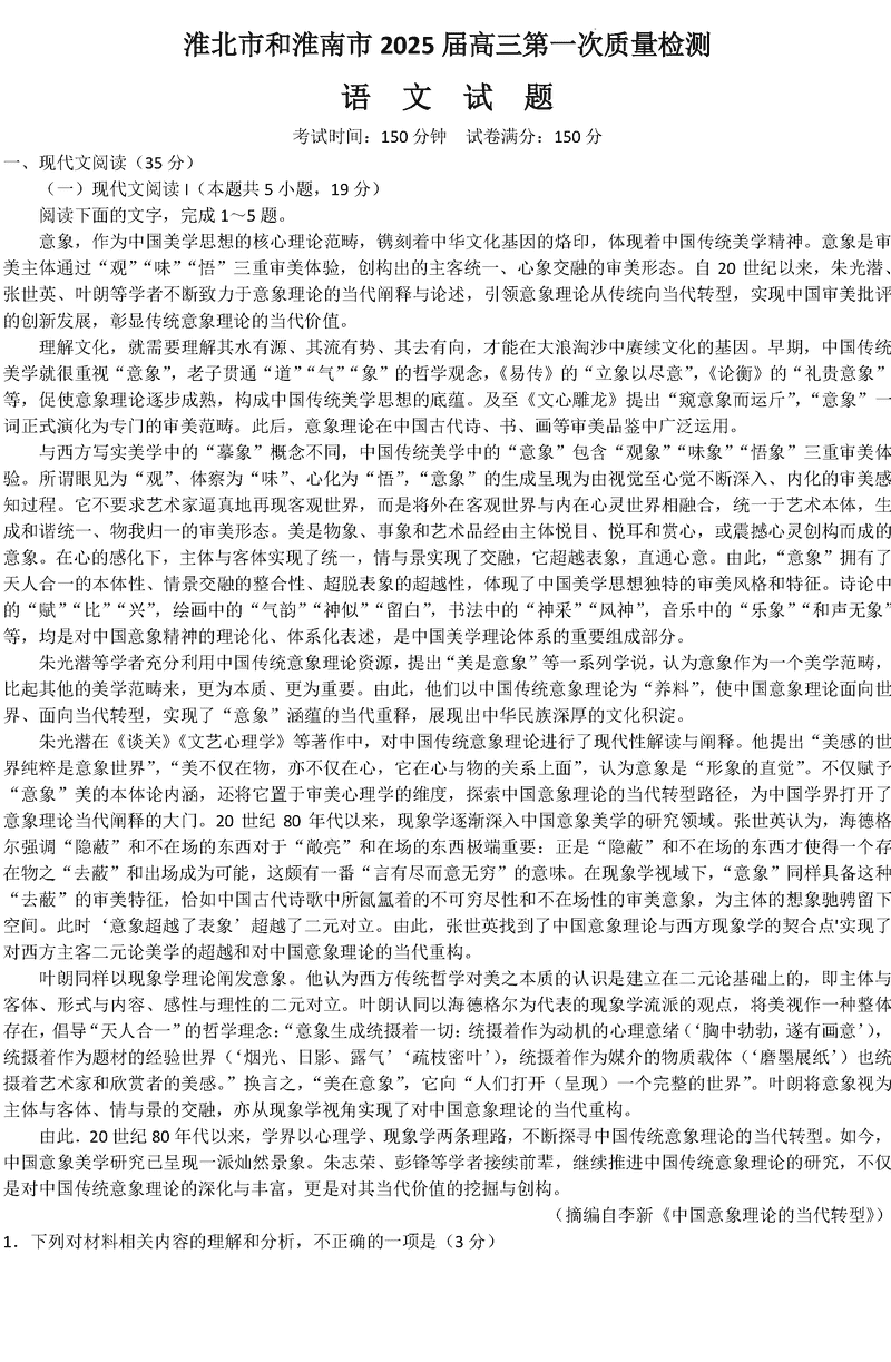 淮南市、淮北市2025届高三上学期第一次质检语文试题及答案