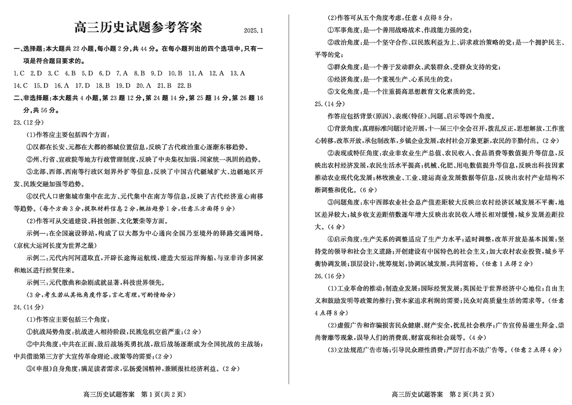 山东滨州2025年高三上学期1月期末历史考试已于近日开考,为方便考生考后及时查看考试情况,查漏补缺、弥补不足,本文整理了试题答案解析相关信息!