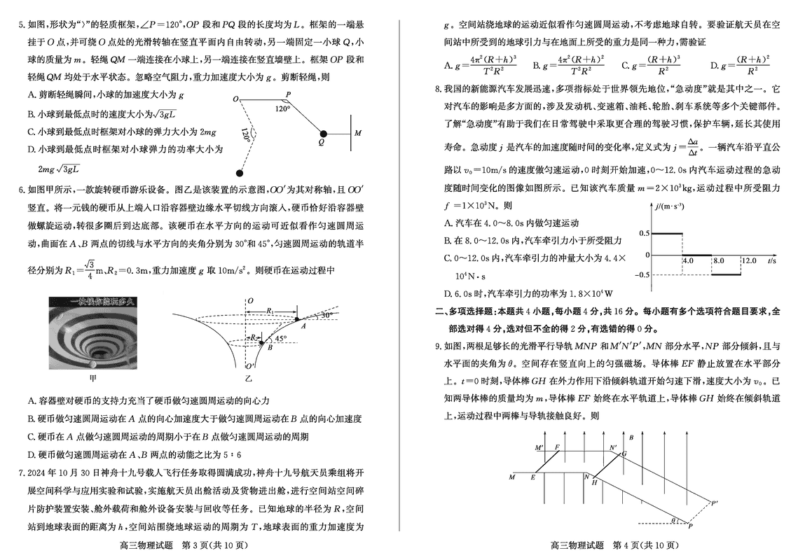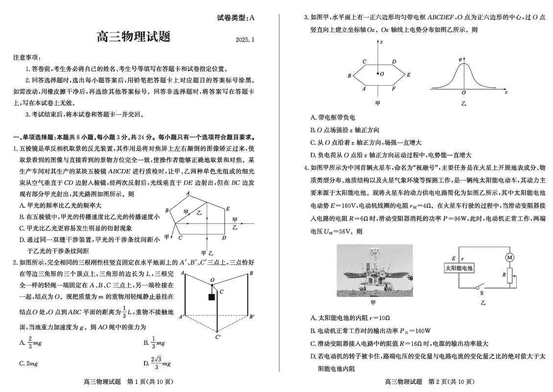 山东滨州2025年高三上学期1月期末物理试题及答案