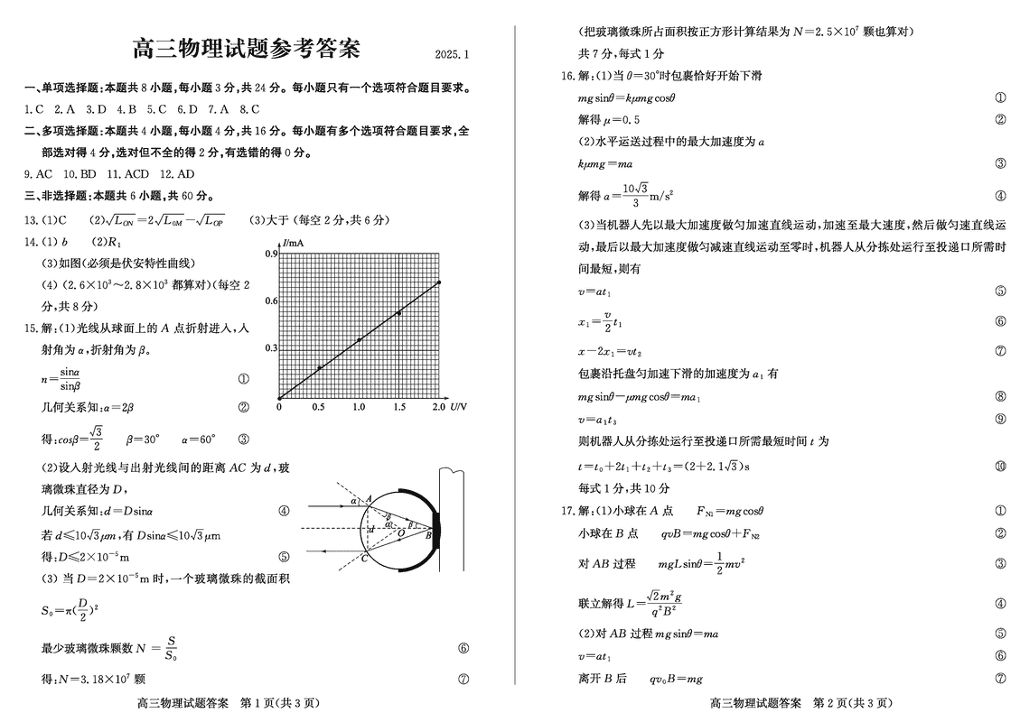 山东滨州2025年高三上学期1月期末物理考试已于近日开考,为方便考生考后及时查看考试情况,查漏补缺、弥补不足,本文整理了试题答案解析相关信息!