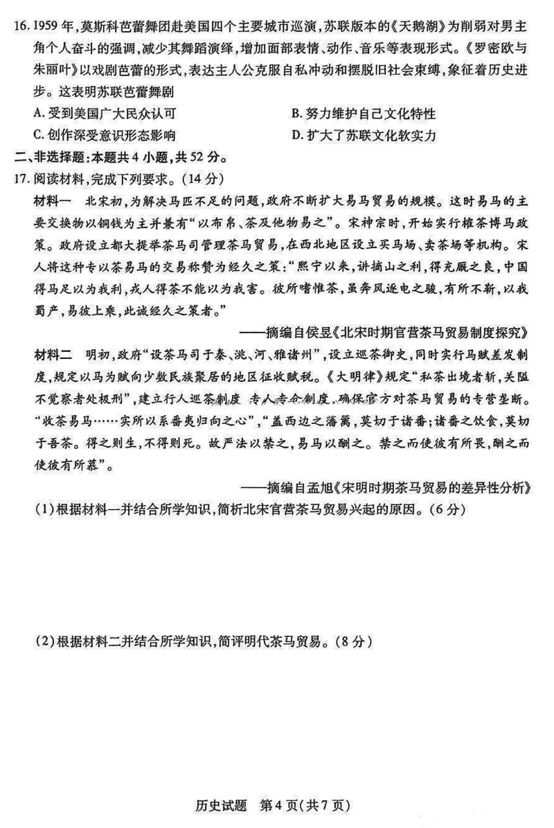 皖豫天一大联考2025届高三1月期末检测历史试题及答案