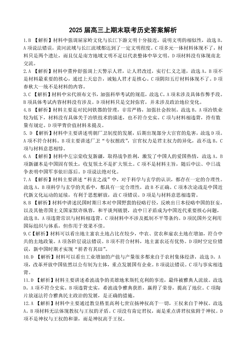 湖北部分重点中学2025届高三第二次联考历史试题及答案