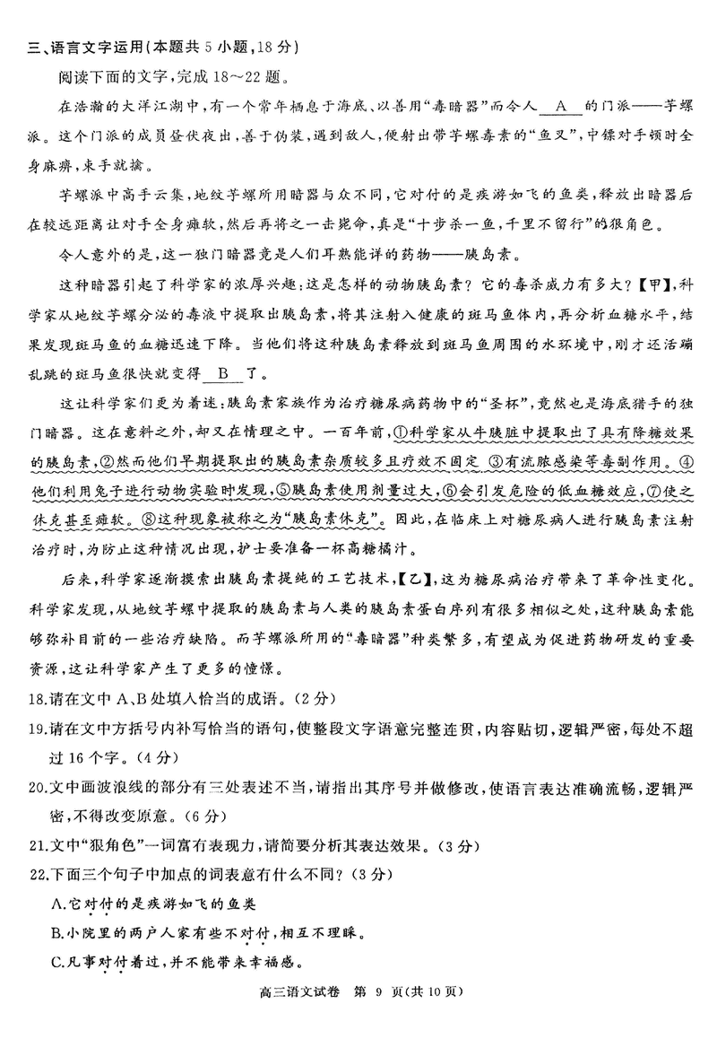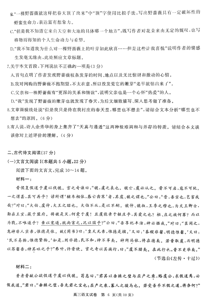 湖北 语文试题