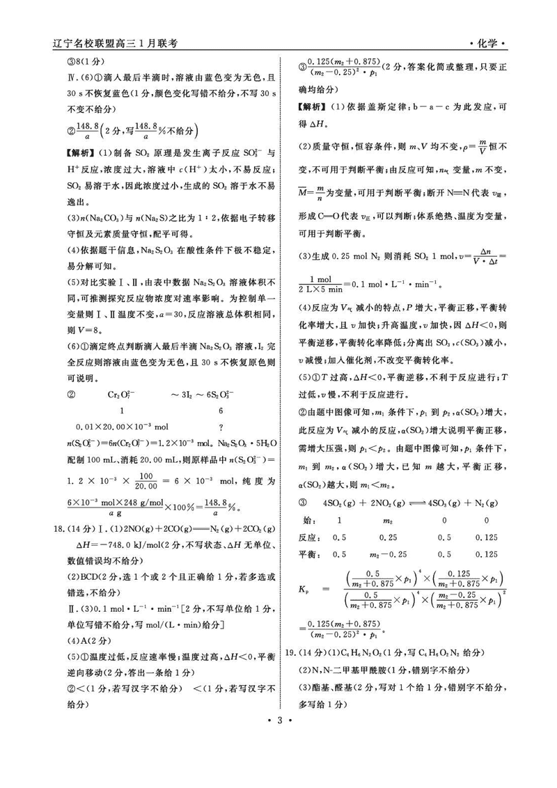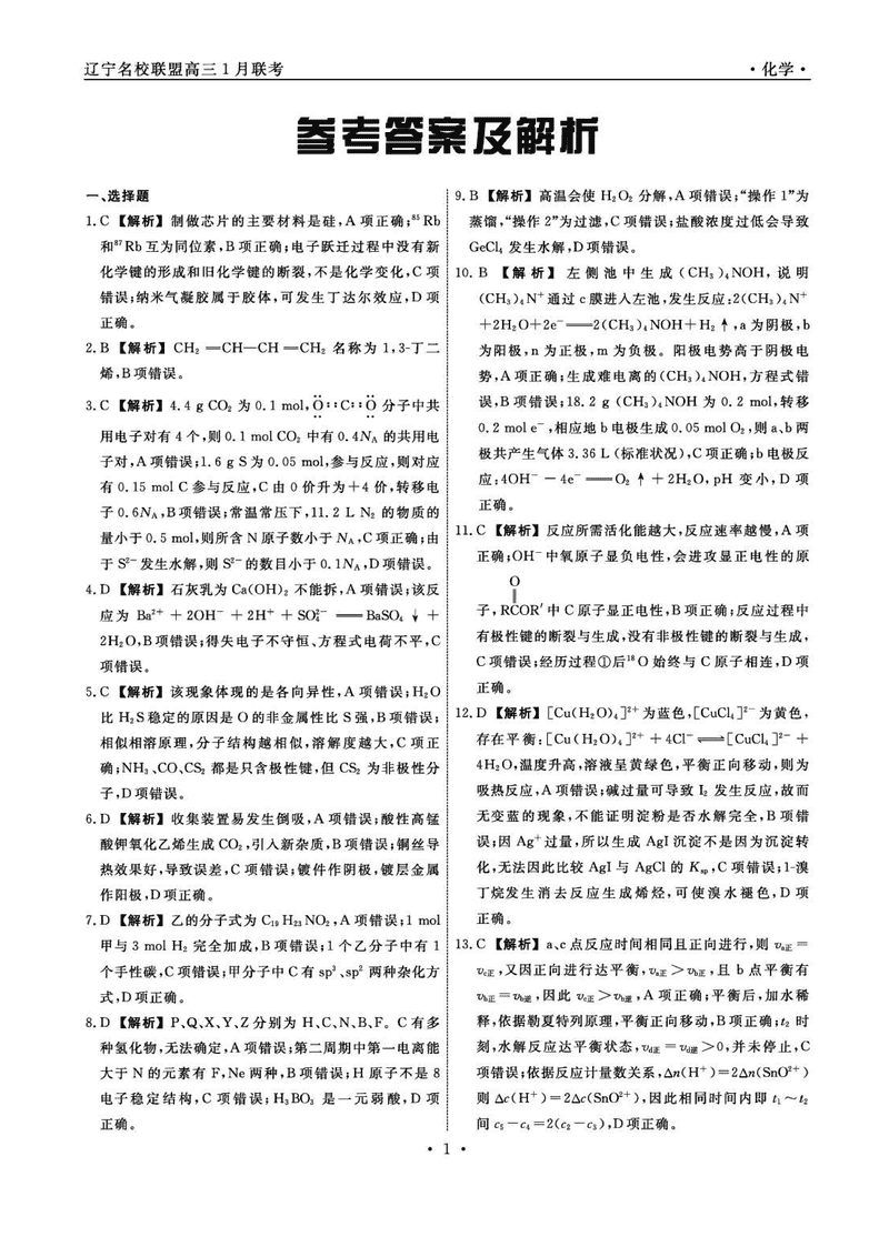 辽宁名校联盟2025年高三上学期1月联考化学考试已于近日开考,为方便考生考后及时查看考试情况,查漏补缺、弥补不足,本文整理了试题答案解析相关信息!