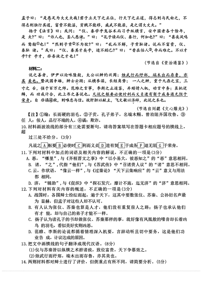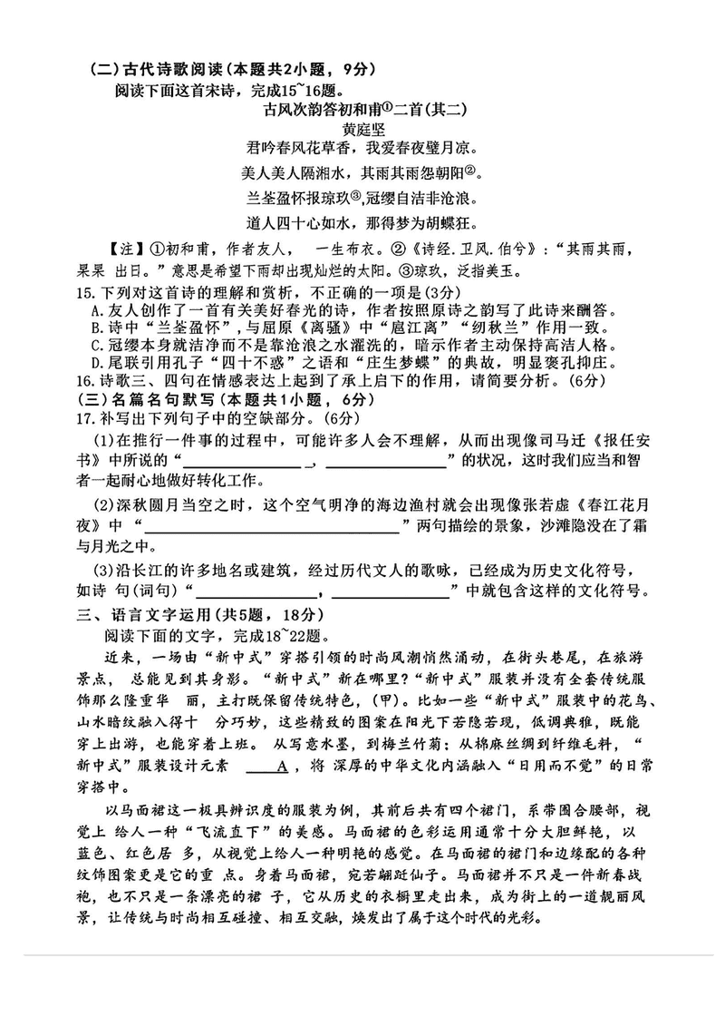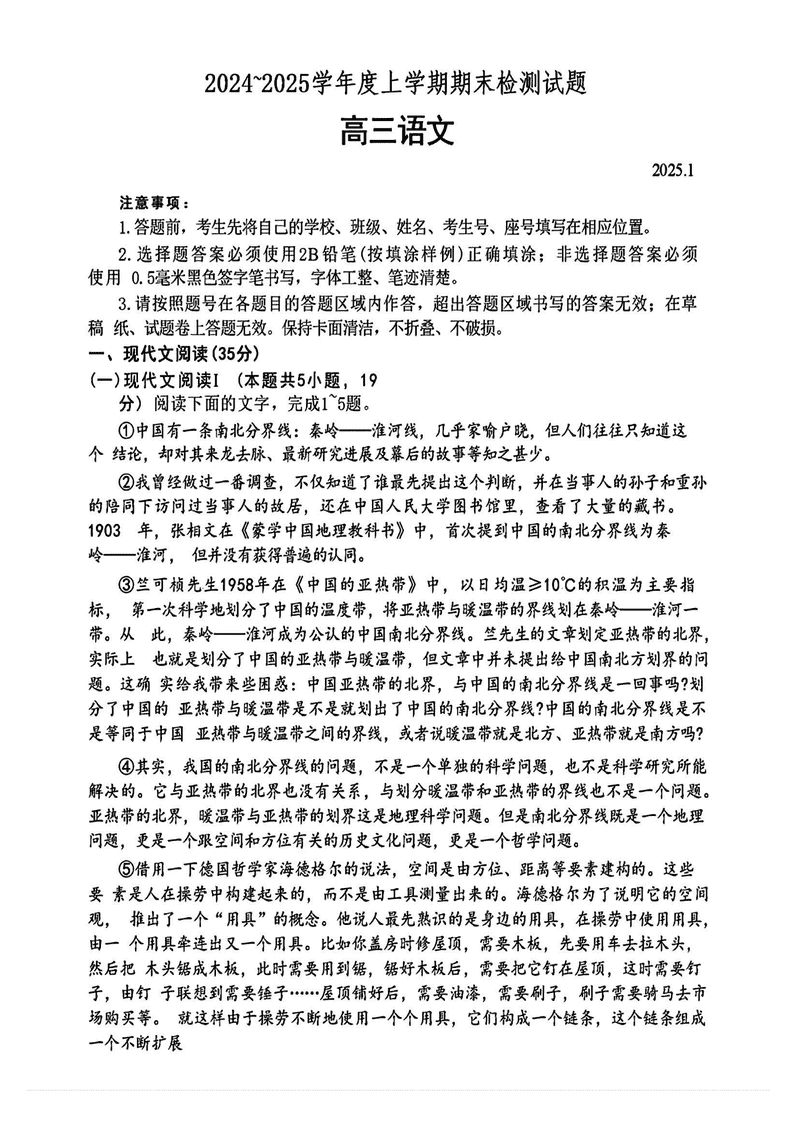 潍坊市、临沂市2025届高三上学期期末语文试题及答案