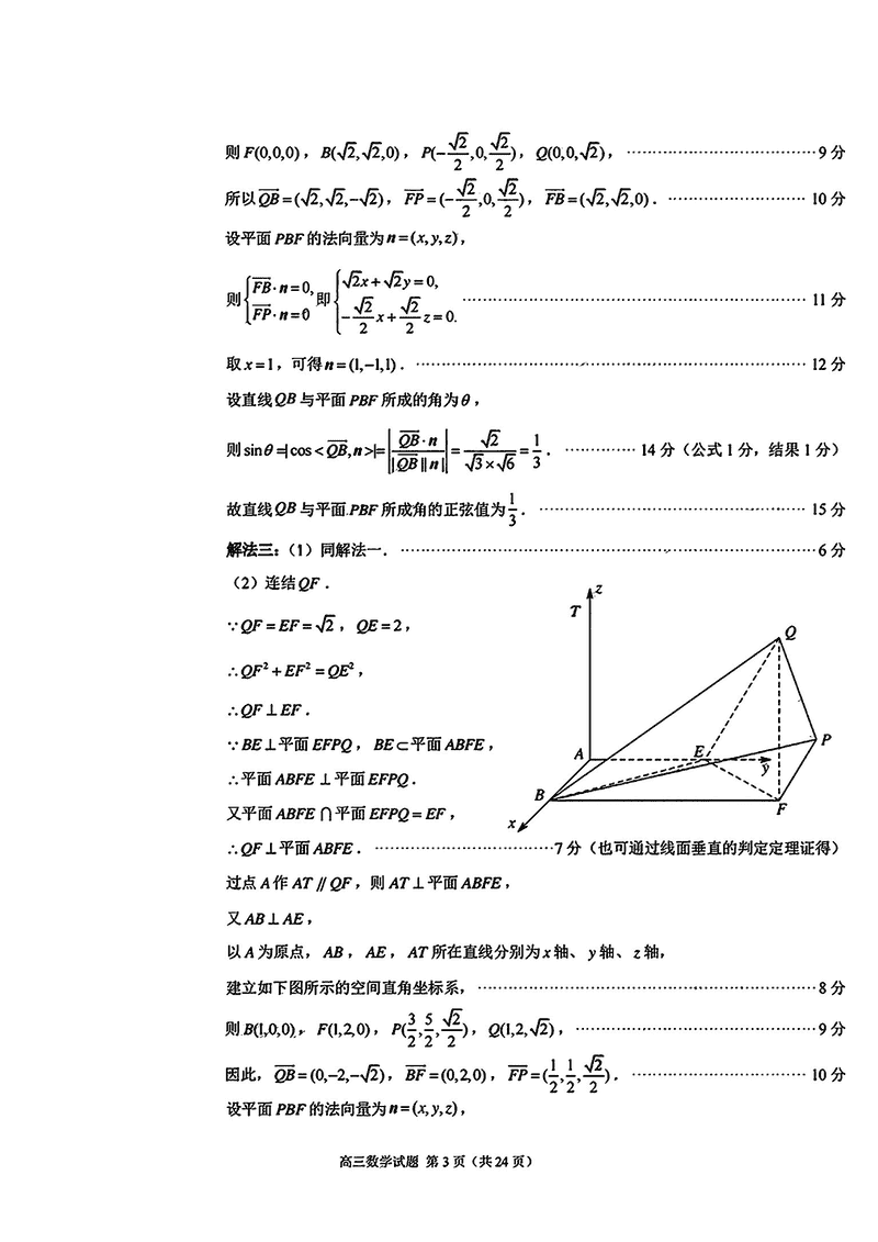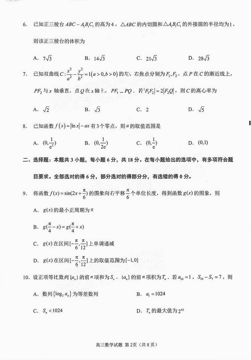 福建泉州2025届高中毕业班质量监测(二)数学试题及答案